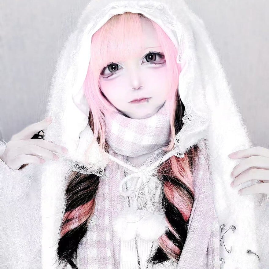 このディテールが、単なる可愛いだけでなく、地雷系やサブカル系のストリートファッションを感じさせるアクセントになっています。