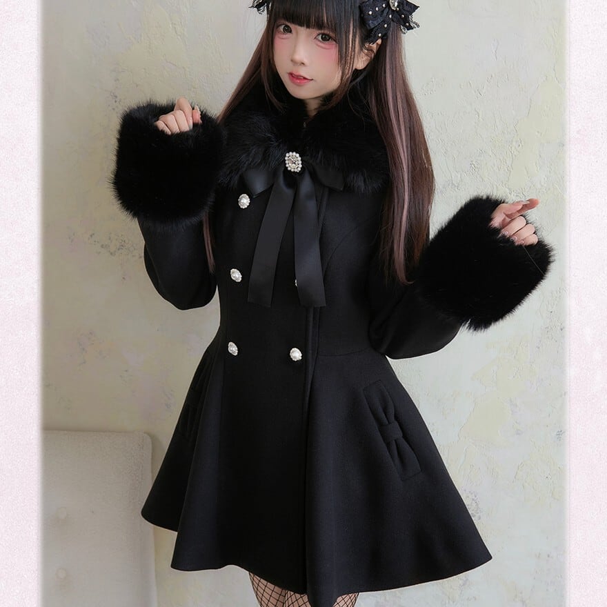 関連キーワード: #ロリータ #コート #アウター #ファー #ダブルボタン #パール #リボン #甘ロリ #ドーリー #地雷系