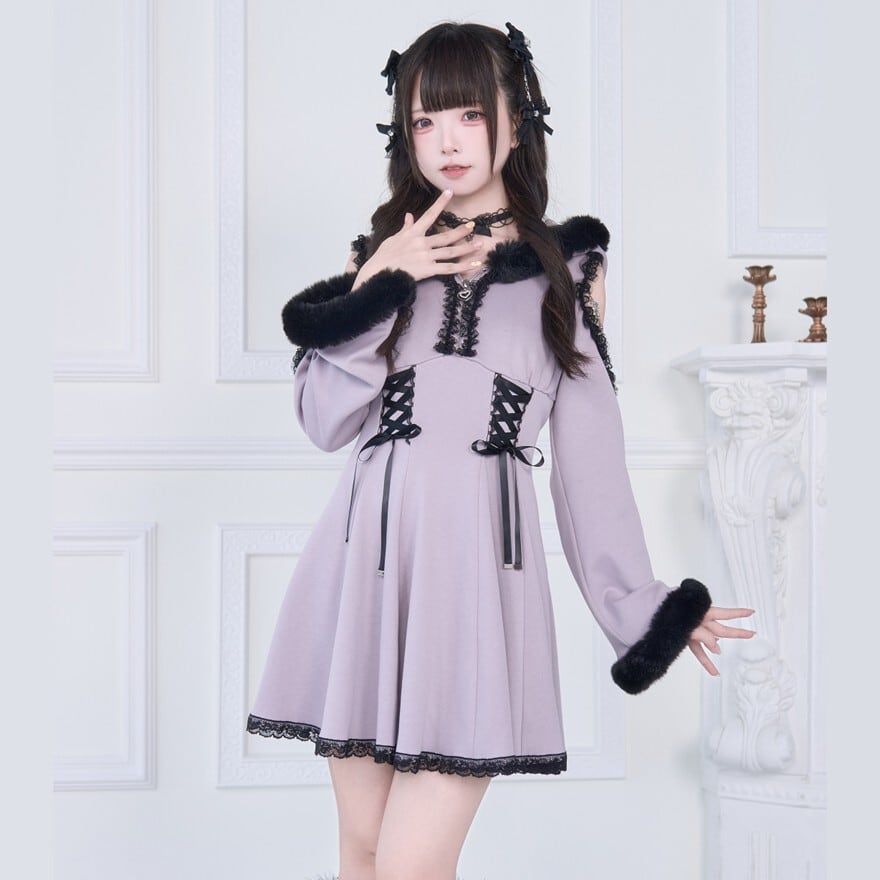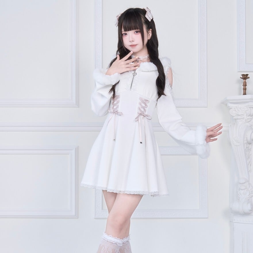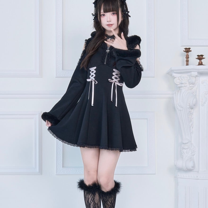 関連キーワード: #ワンピース #ファー #編み上げ #リボン #地雷系 #量産型 #ミニ丈 #可愛い