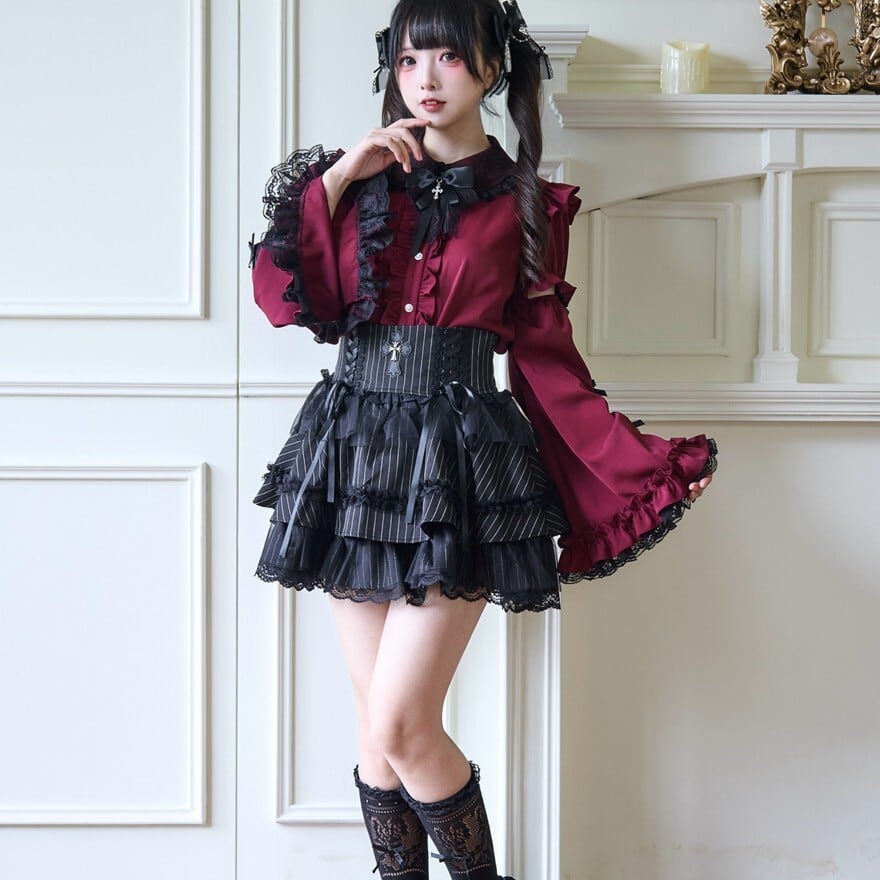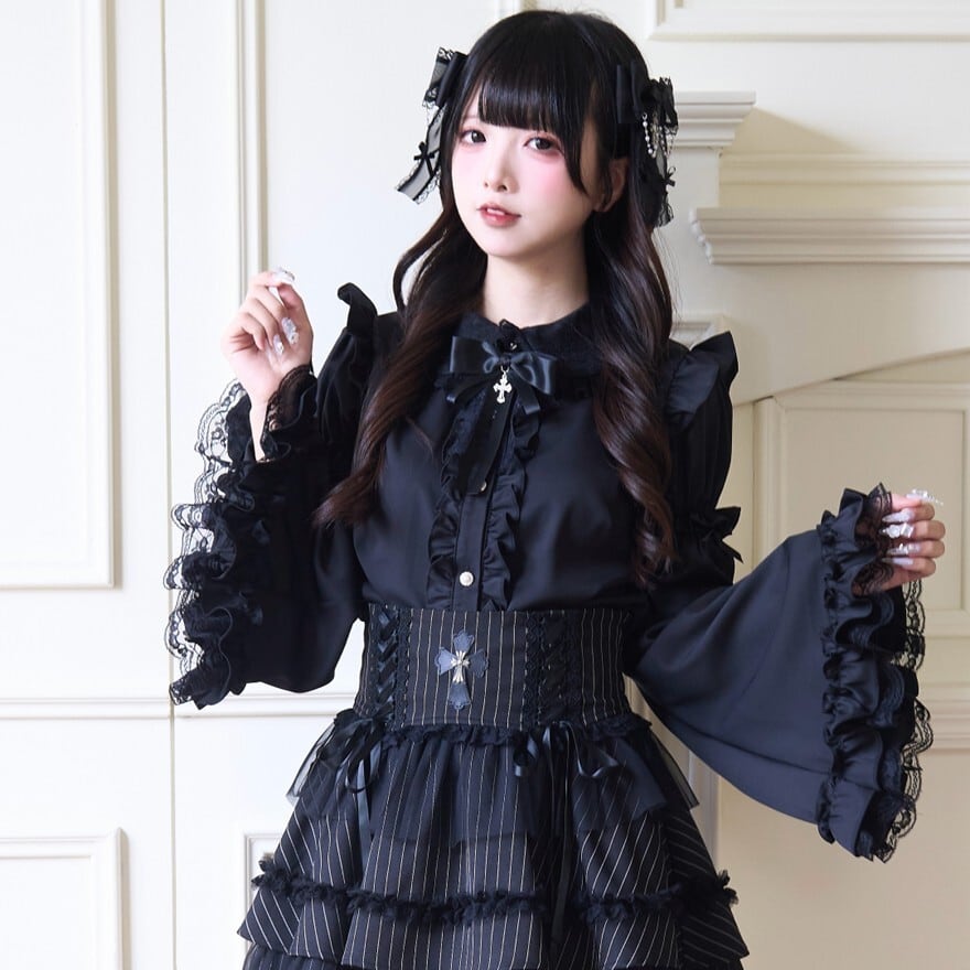 サブカル系 地雷/量産型 姫袖シャツ レース リボン ゴスロリ