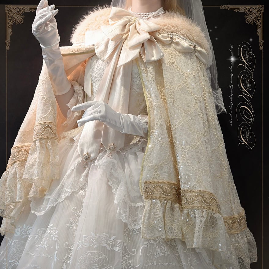 高貴な宮廷スタイルや王子系ロリィタにぴったりの、豪華な装飾が目を引くケープマントです。