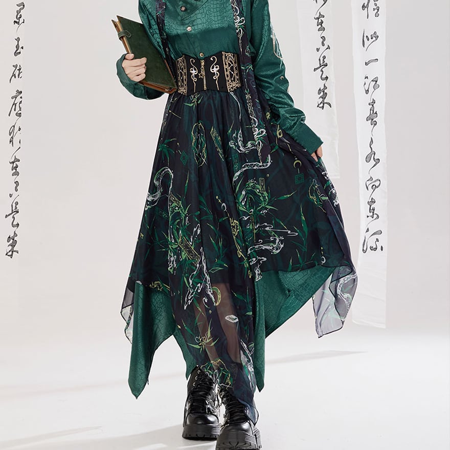 動くたびに揺れるディテールが中華ゴシック特有の妖艶さを演出。