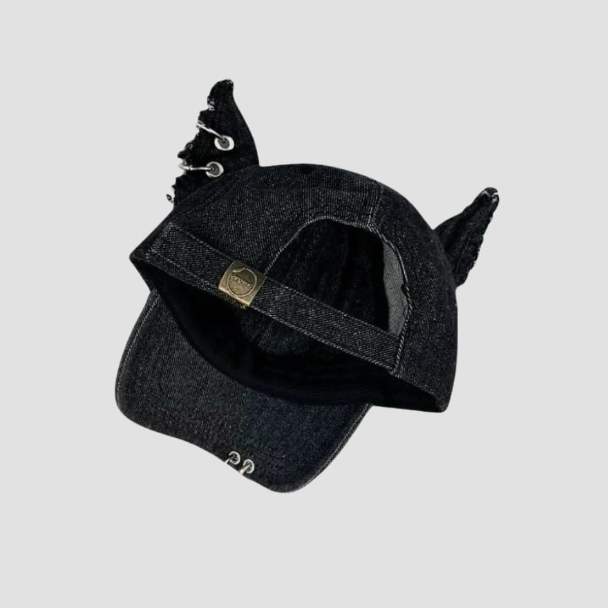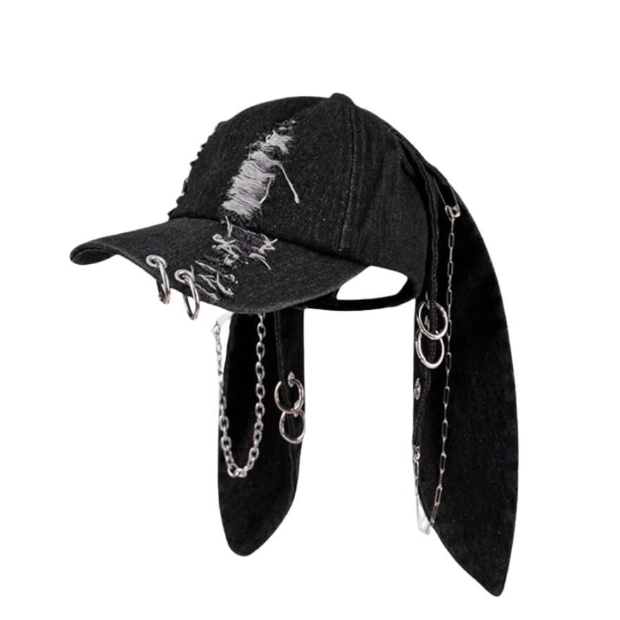 サブカル ダメージ 垂れ耳 キャップ|チェーン リング 付き ゴシック ストリート 帽子