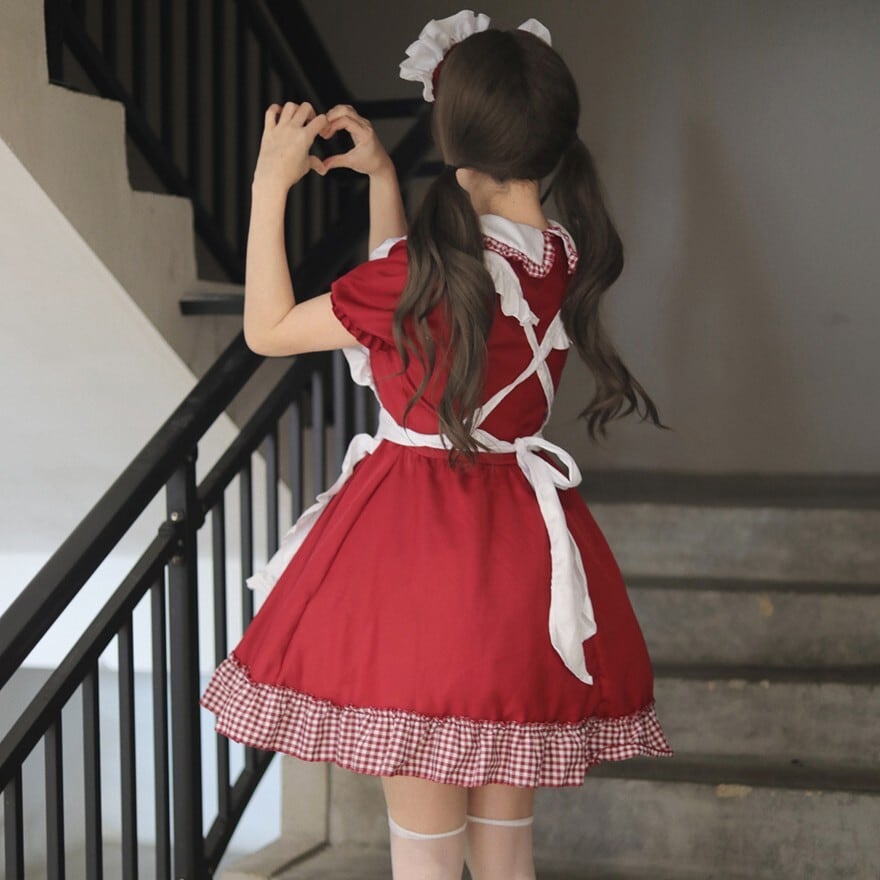 コスプレ メイドワンピ チェック柄 コンカフェキャスト衣装 クリスマスパーティ イベント衣装