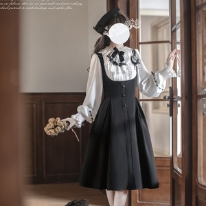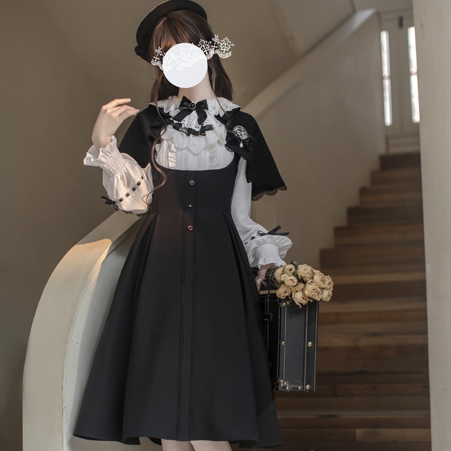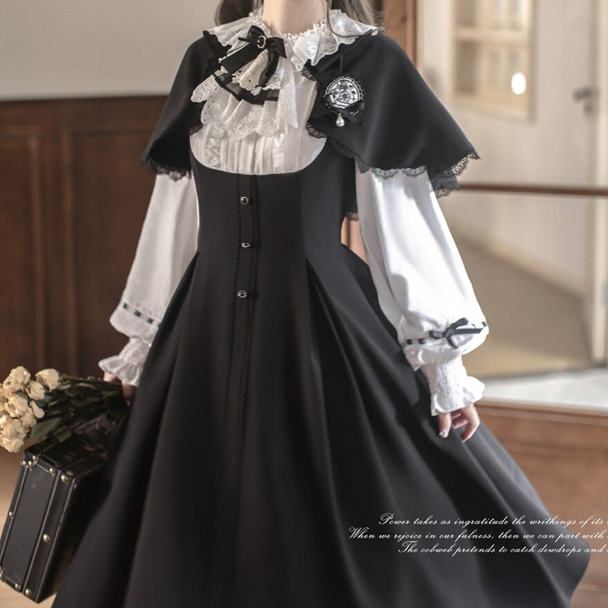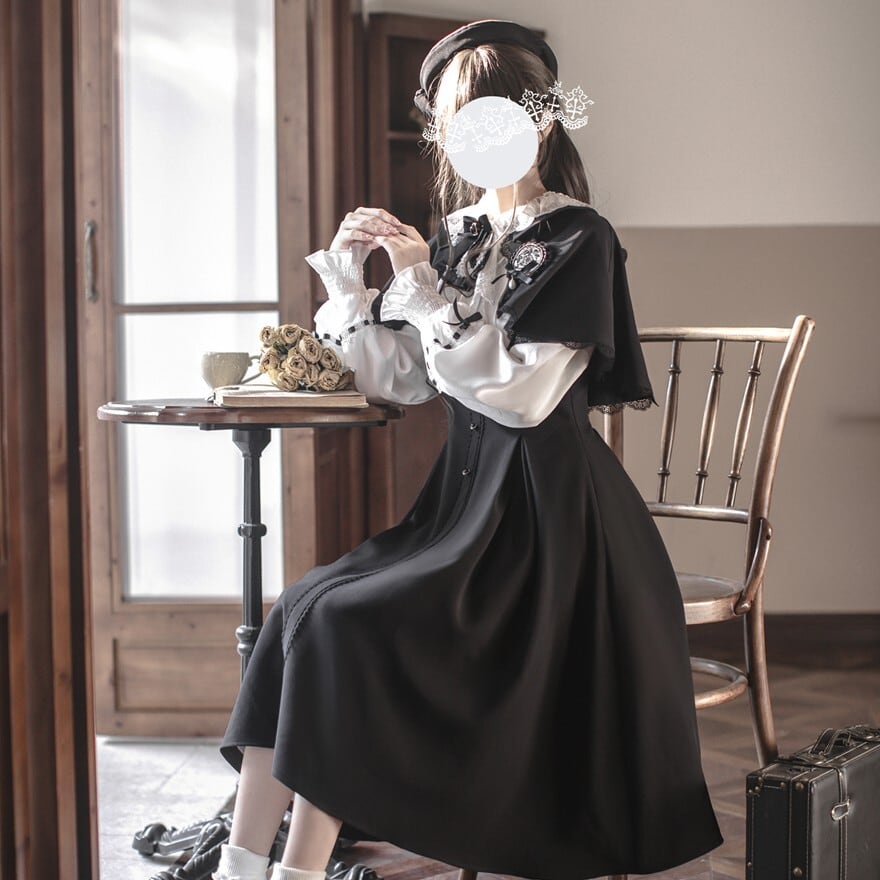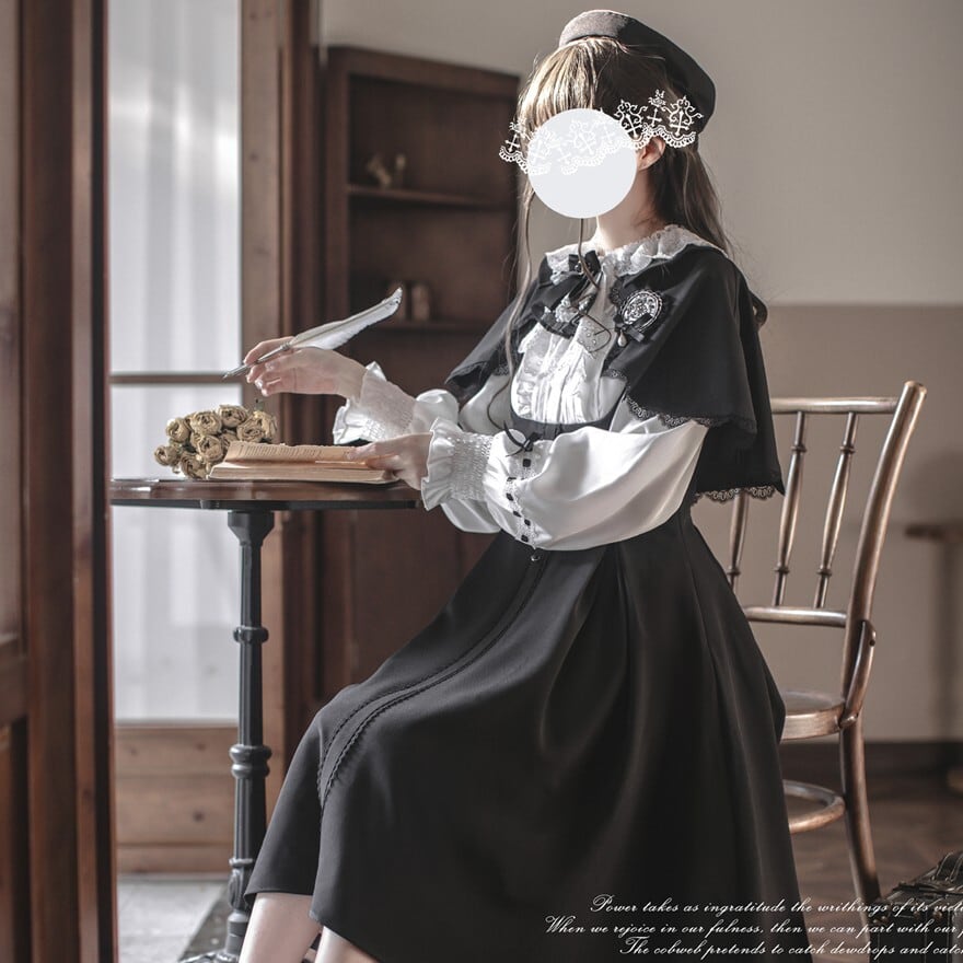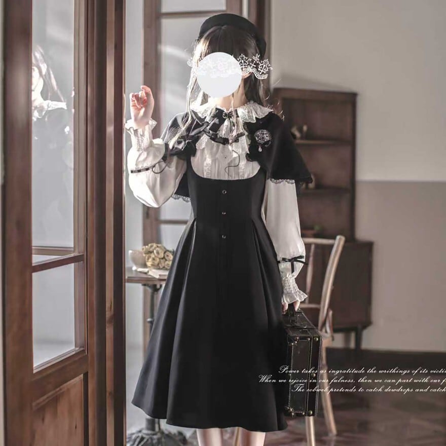 控えめロリィタ 普段着使い 学戦風 セットアップ ケープ ワンピース英国風 胡桃木
