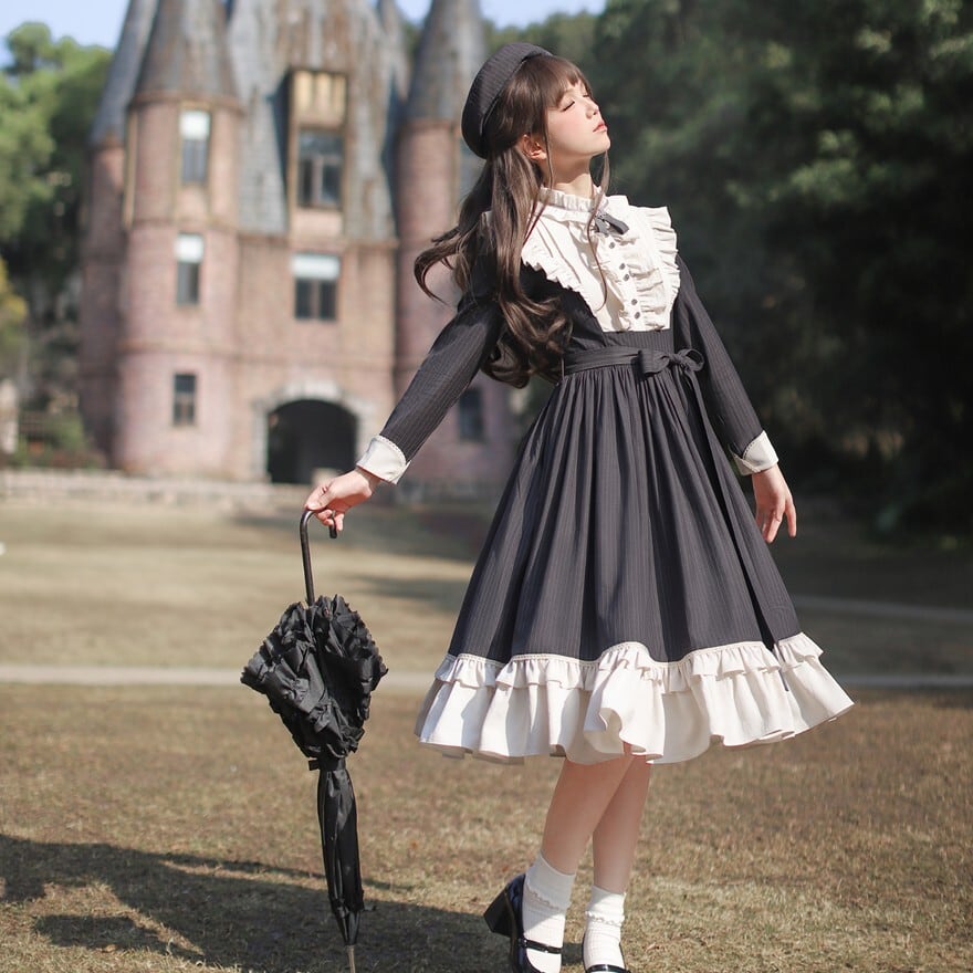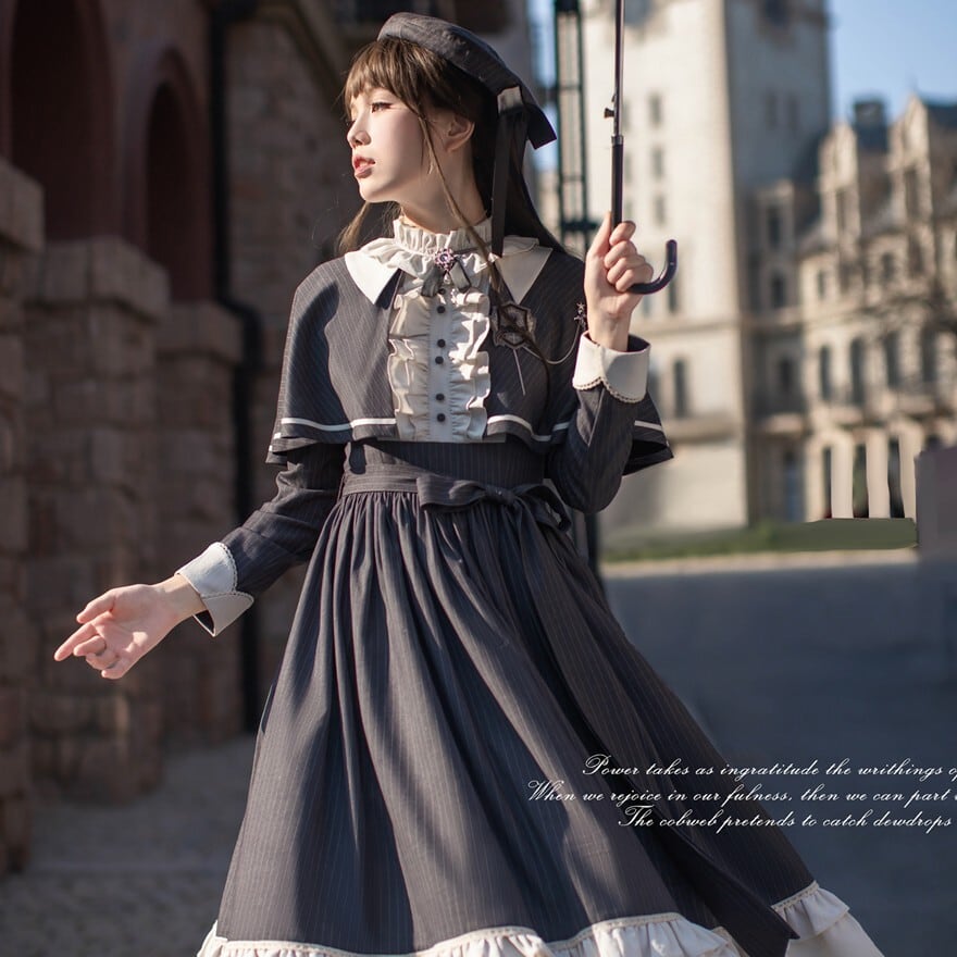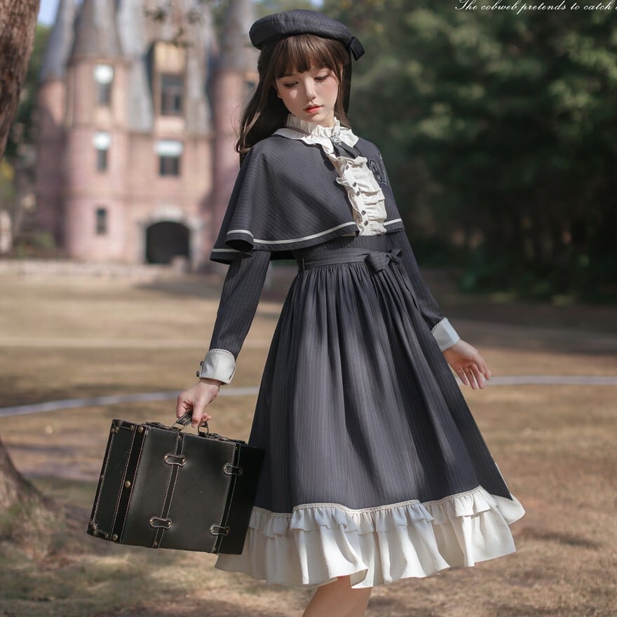 量産型ロリィタ クラシカル セットアップ ケープ ワンピース 蝶ネクタイ付き