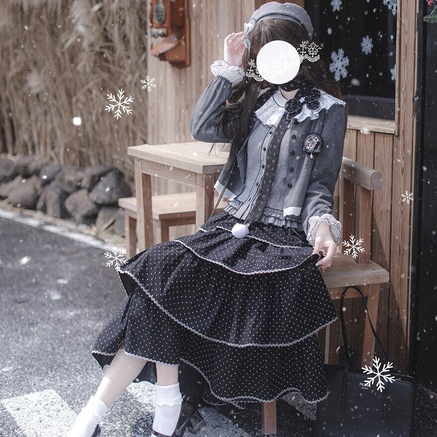 森ガール風 カーディガン グレー 控えめ お嬢様風 クラシカルロリィタ