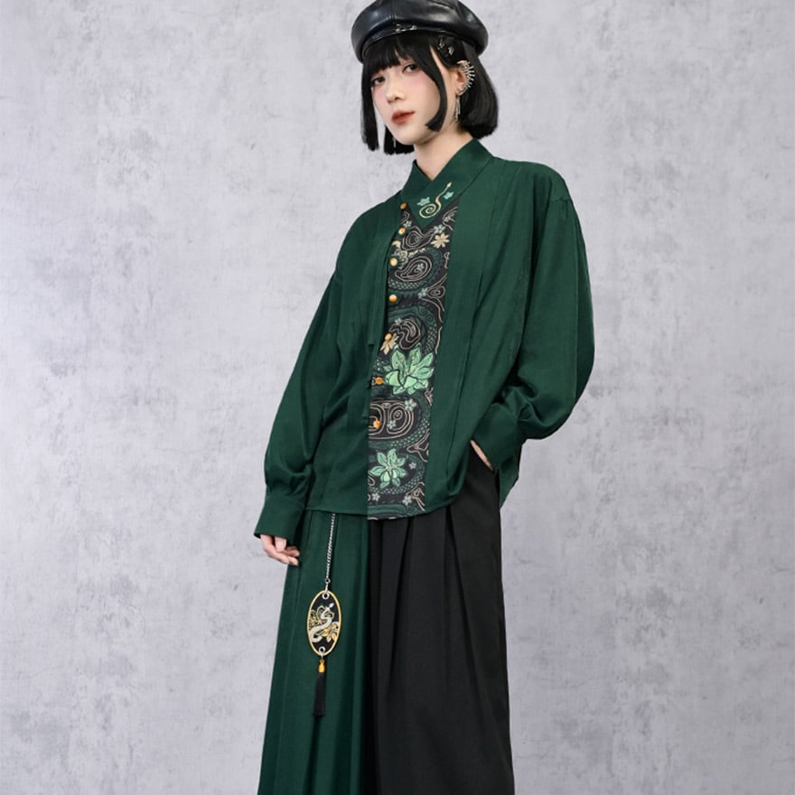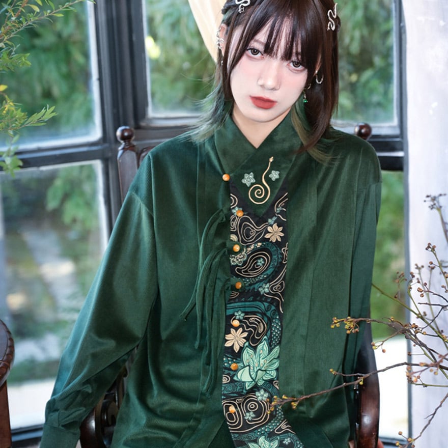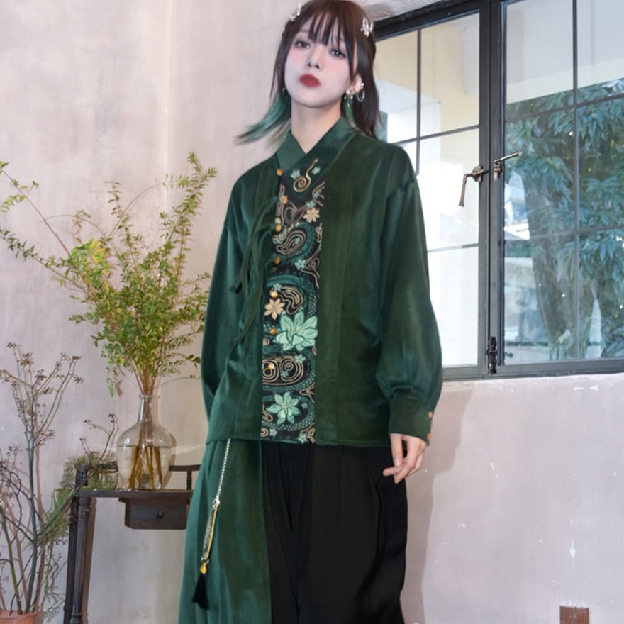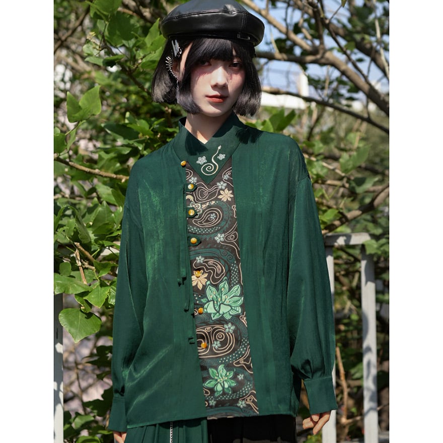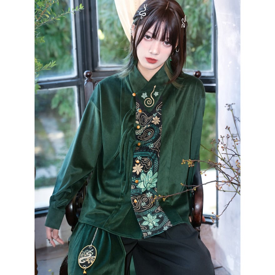 伝統的なシノワズリの要素と、現代のサブカルファッションが絶妙に融合した、一枚で主役級のアイテムです。