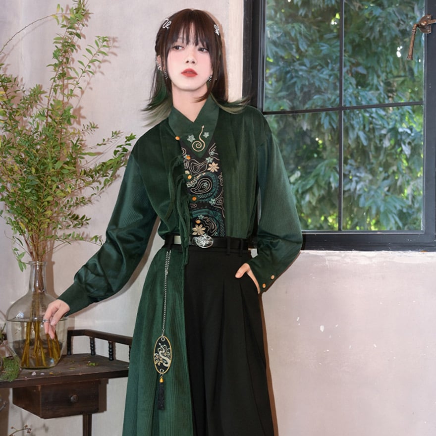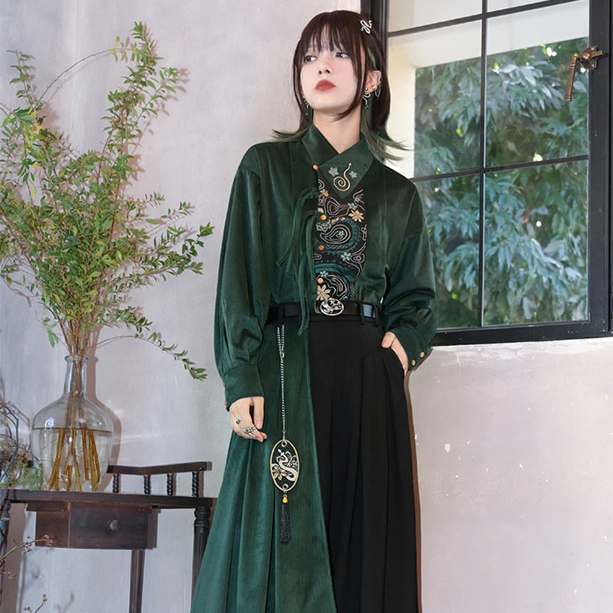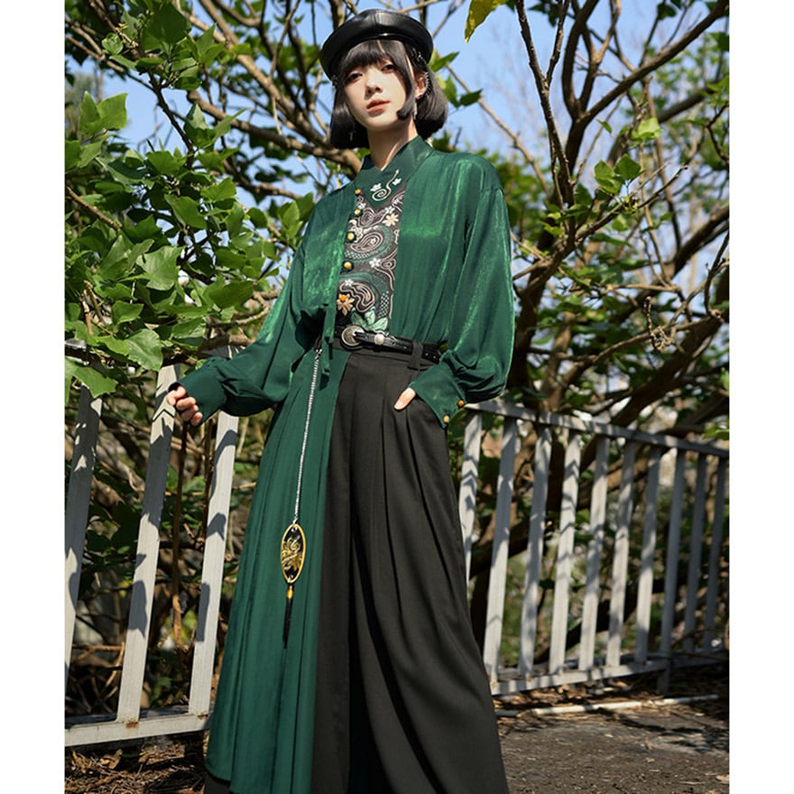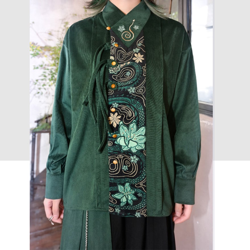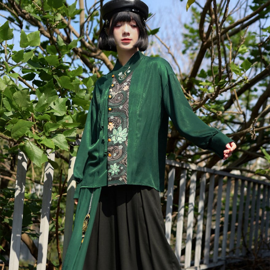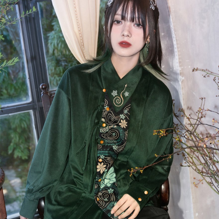伝統的なシノワズリの要素と、現代のサブカルファッションが絶妙に融合した、一枚で主役級のアイテムです。