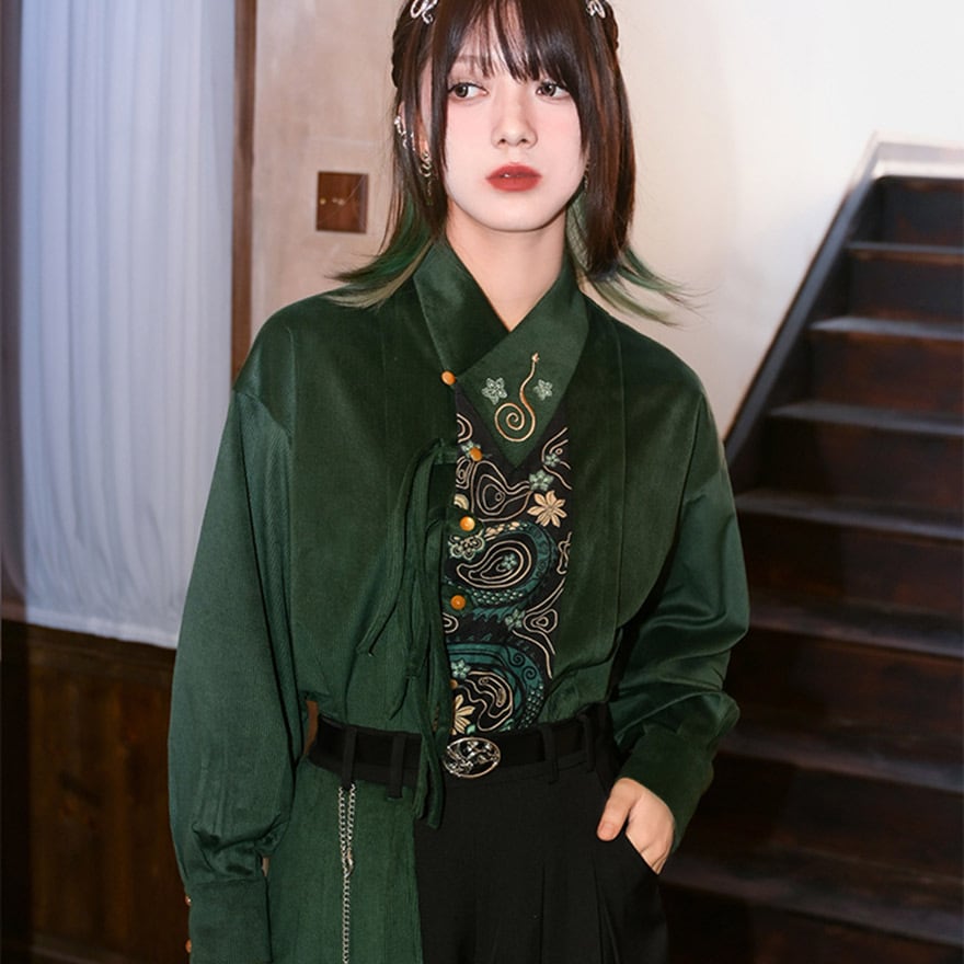 関連キーワード: #サブカル系 #チャイナ風 #シノワズリ #デザインシャツ #蛇柄 #刺繍 #パッチワーク #個性的 #古怪舎