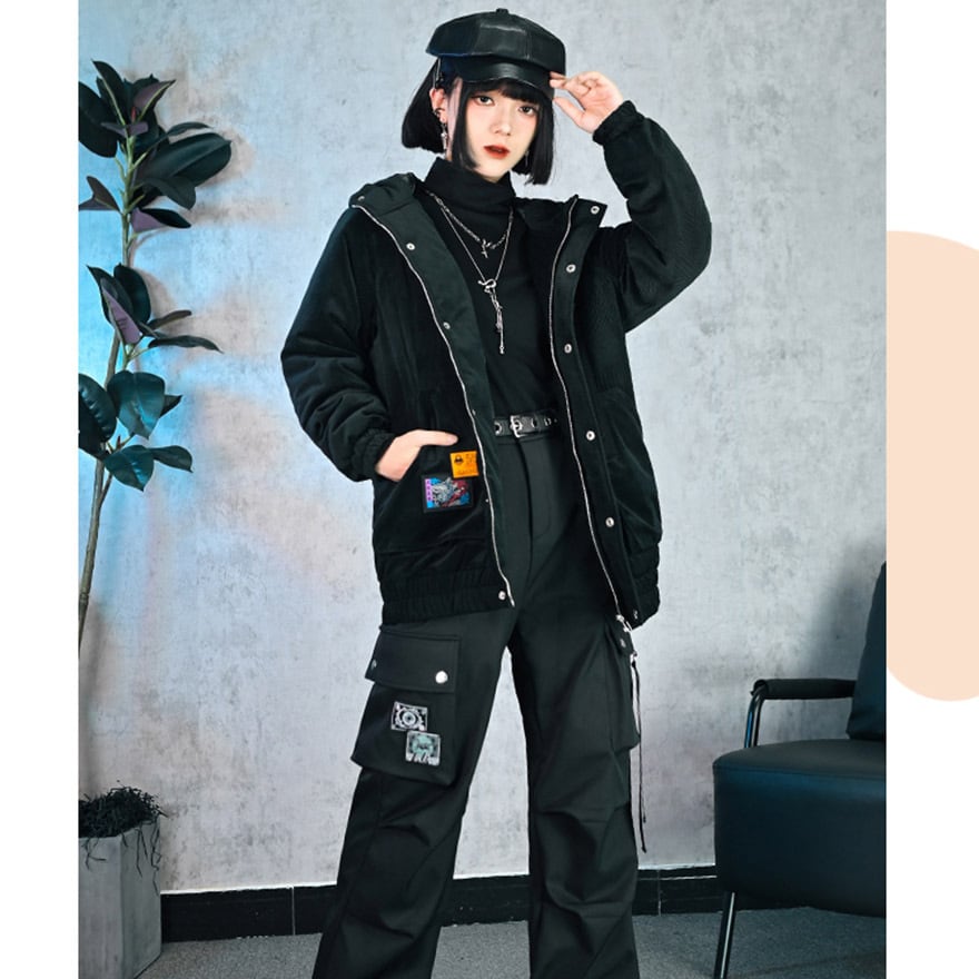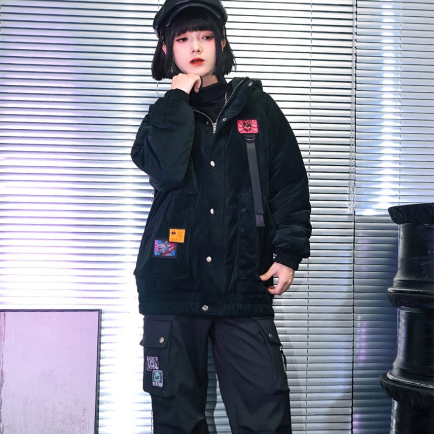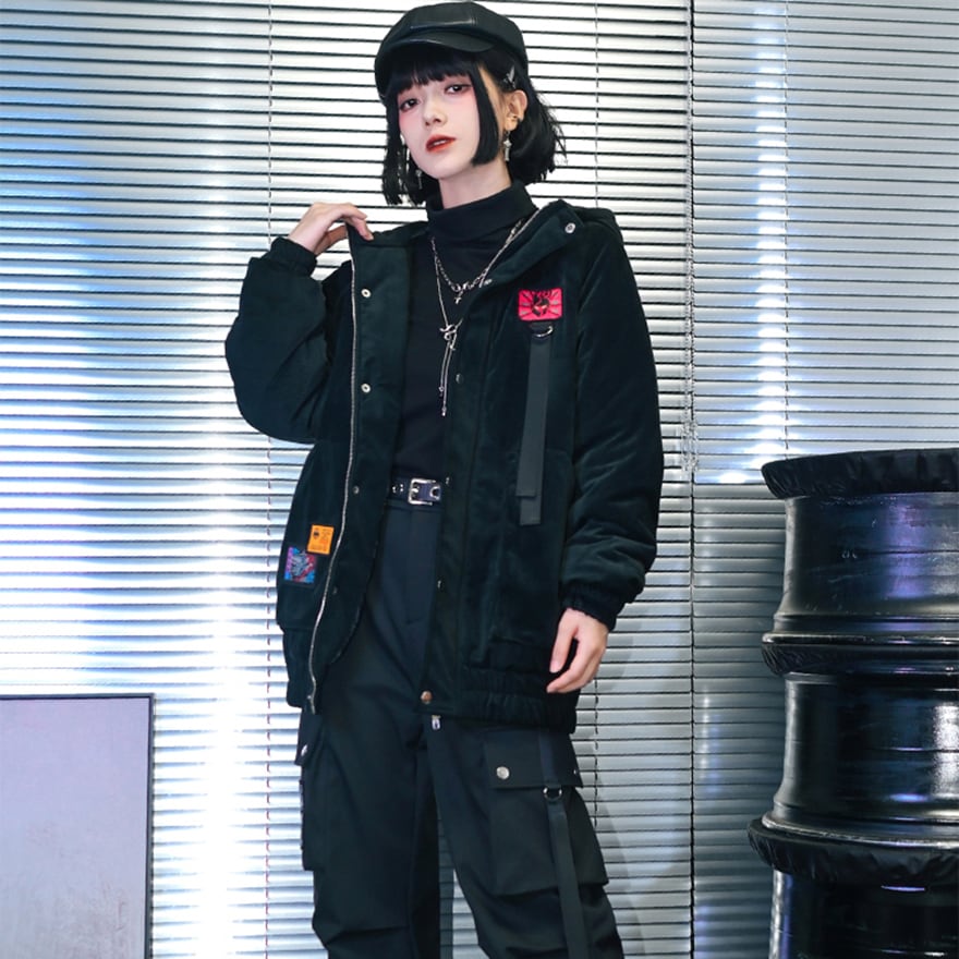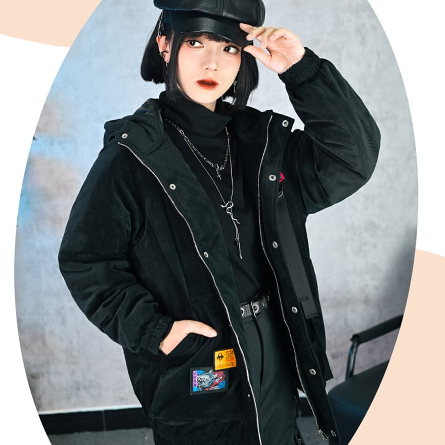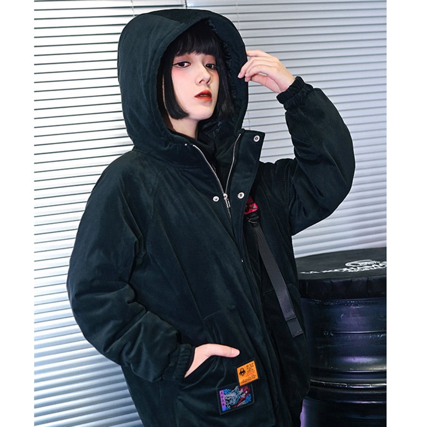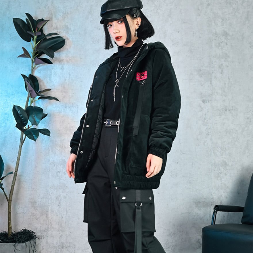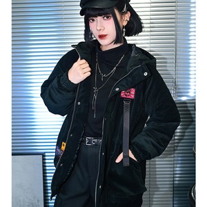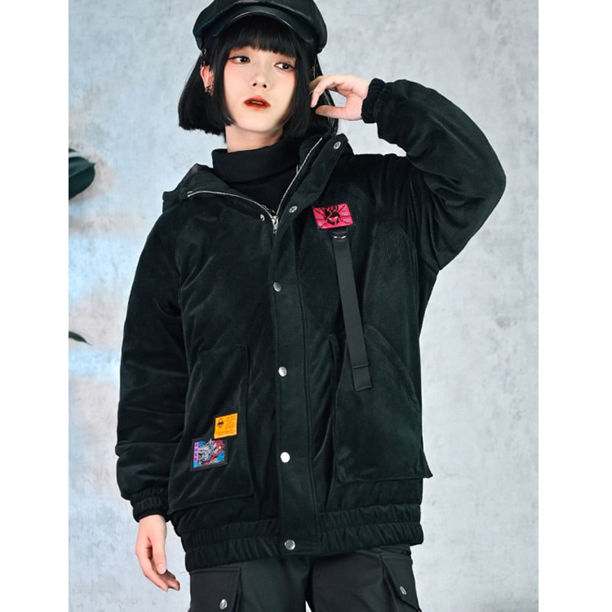 サブカル系 Monster CLUBコーデュロイ デザイン フード付きキルティングコットジャケット 古怪舎