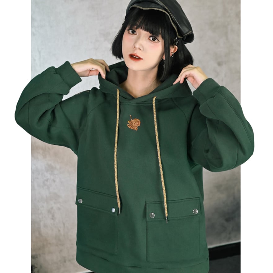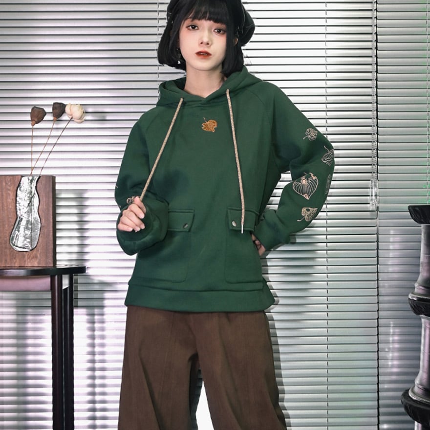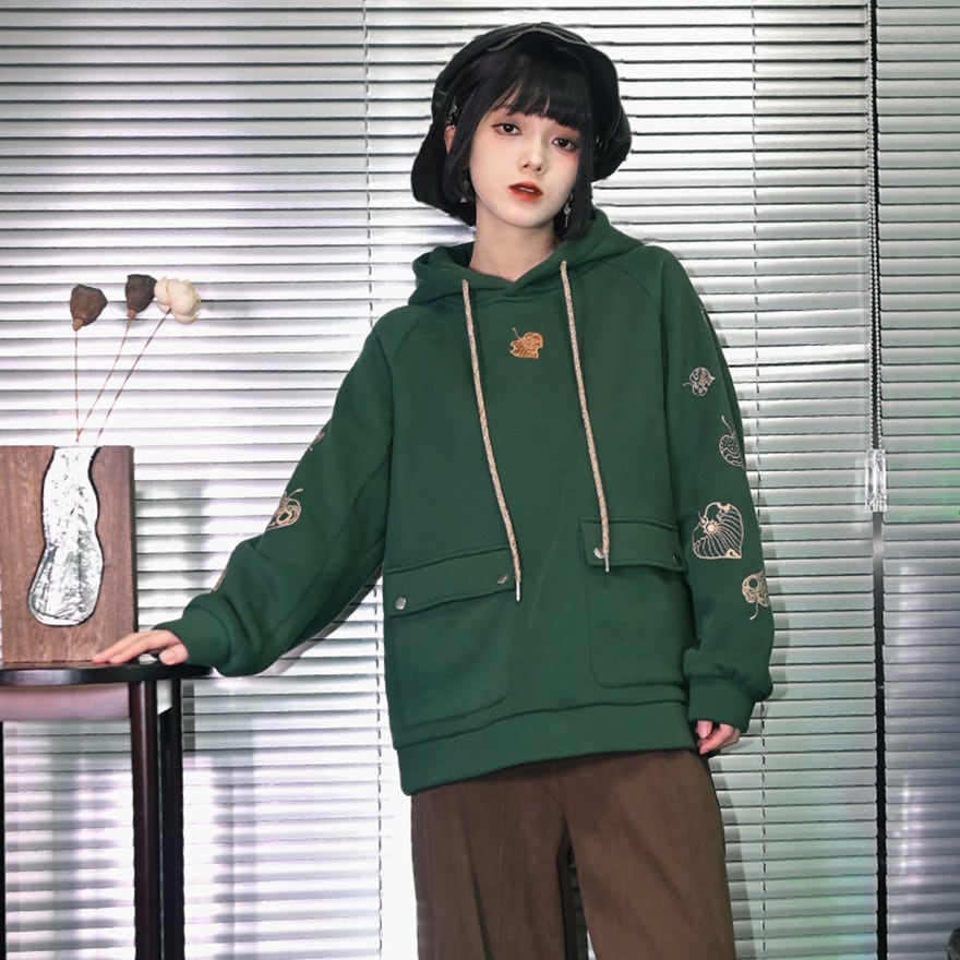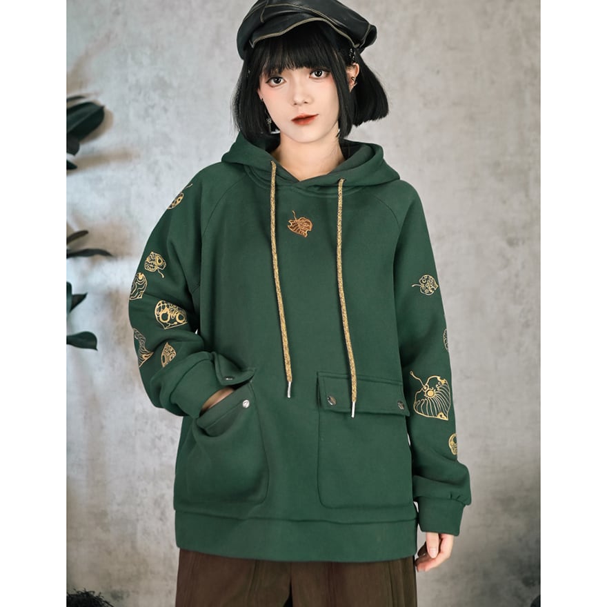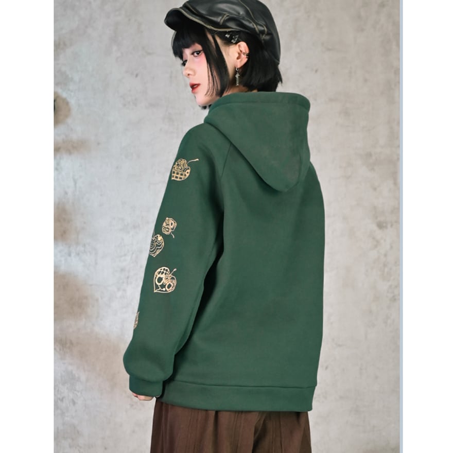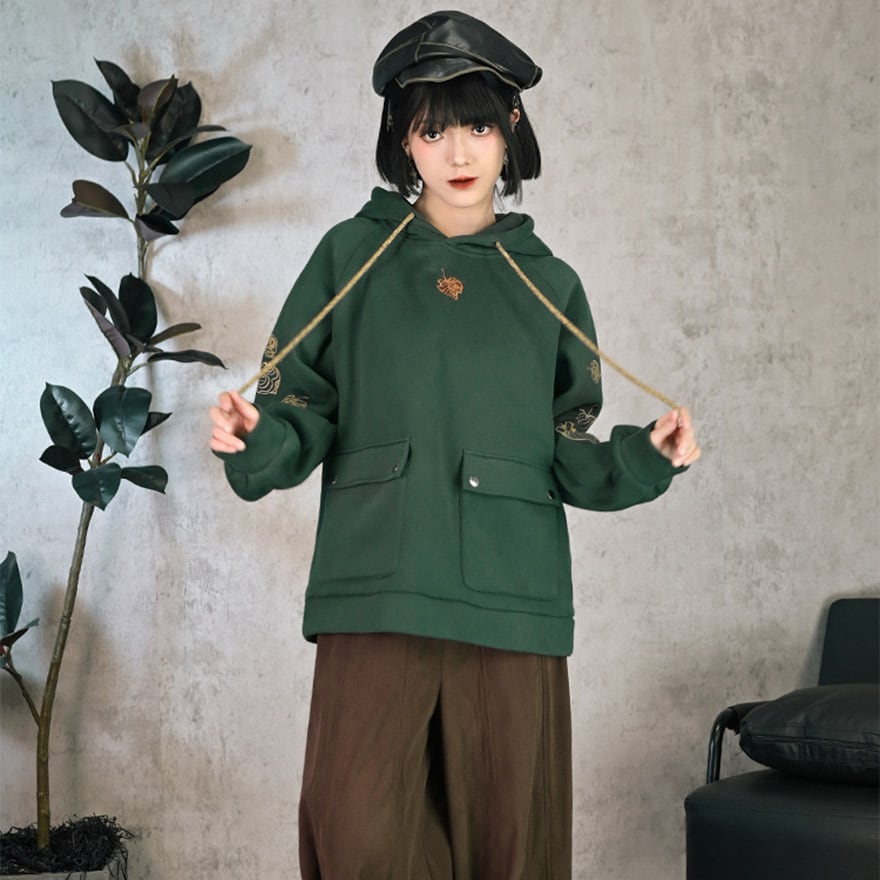 サブカル系 中華風 プリントフード付きフリース パーカー スウェットシャツ 古怪舎