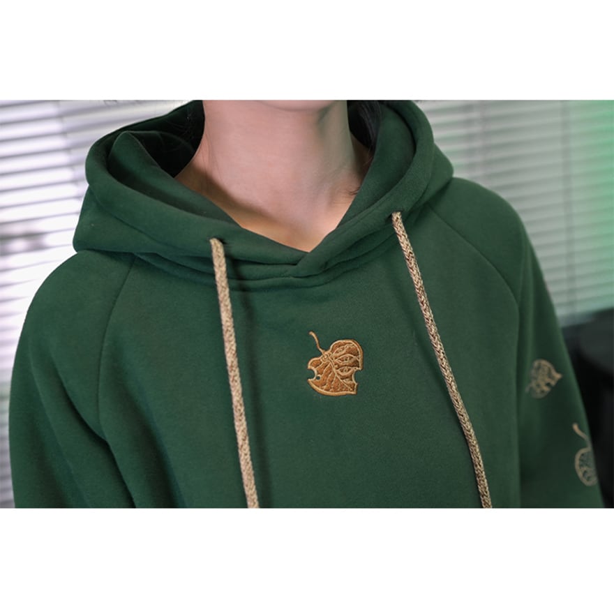 こっくりとした深みのあるグリーンが印象的な、裏起毛のフード付きスウェットシャツです。