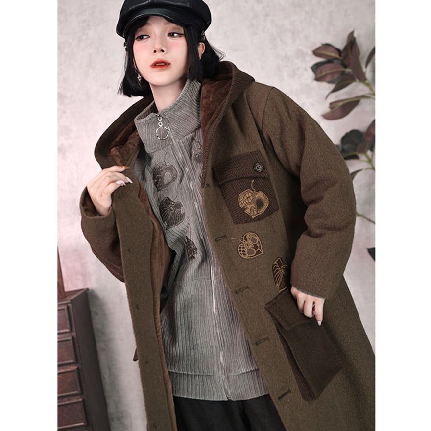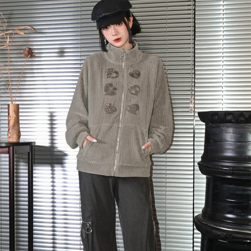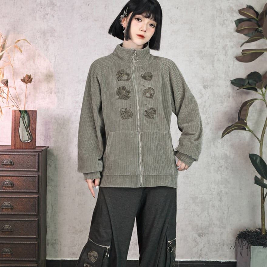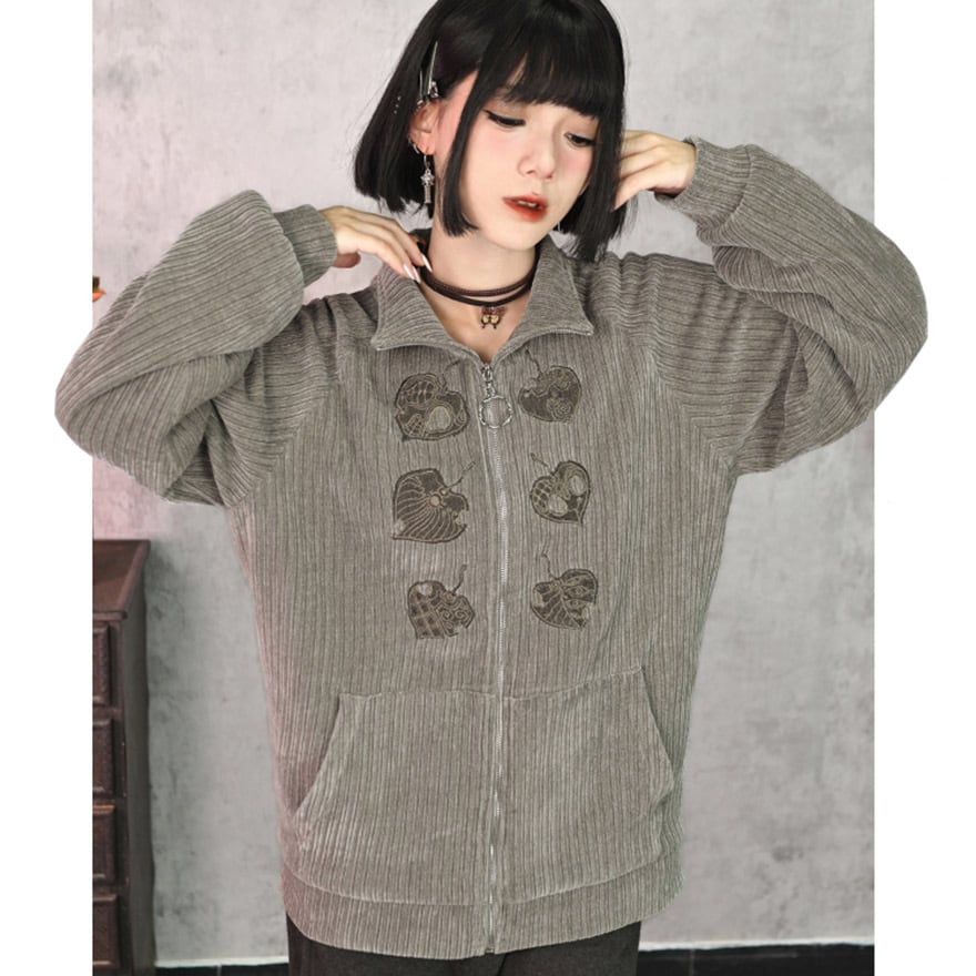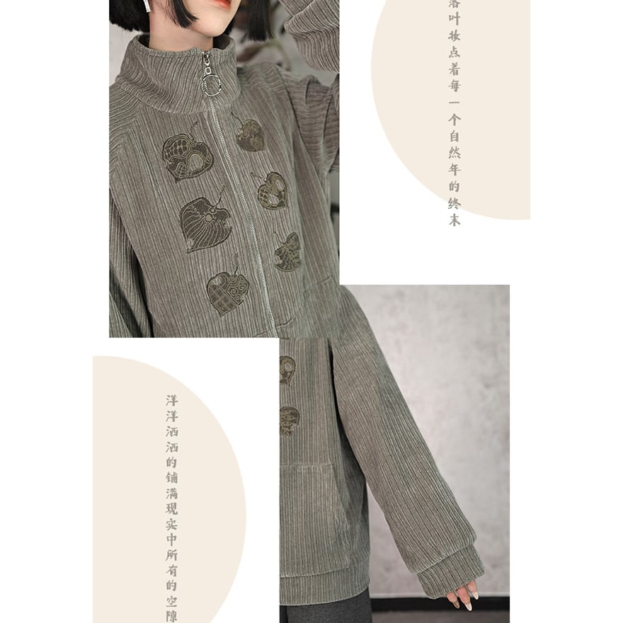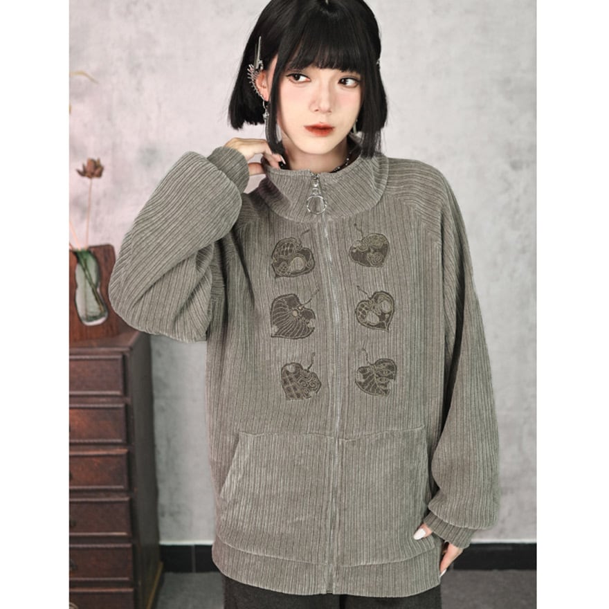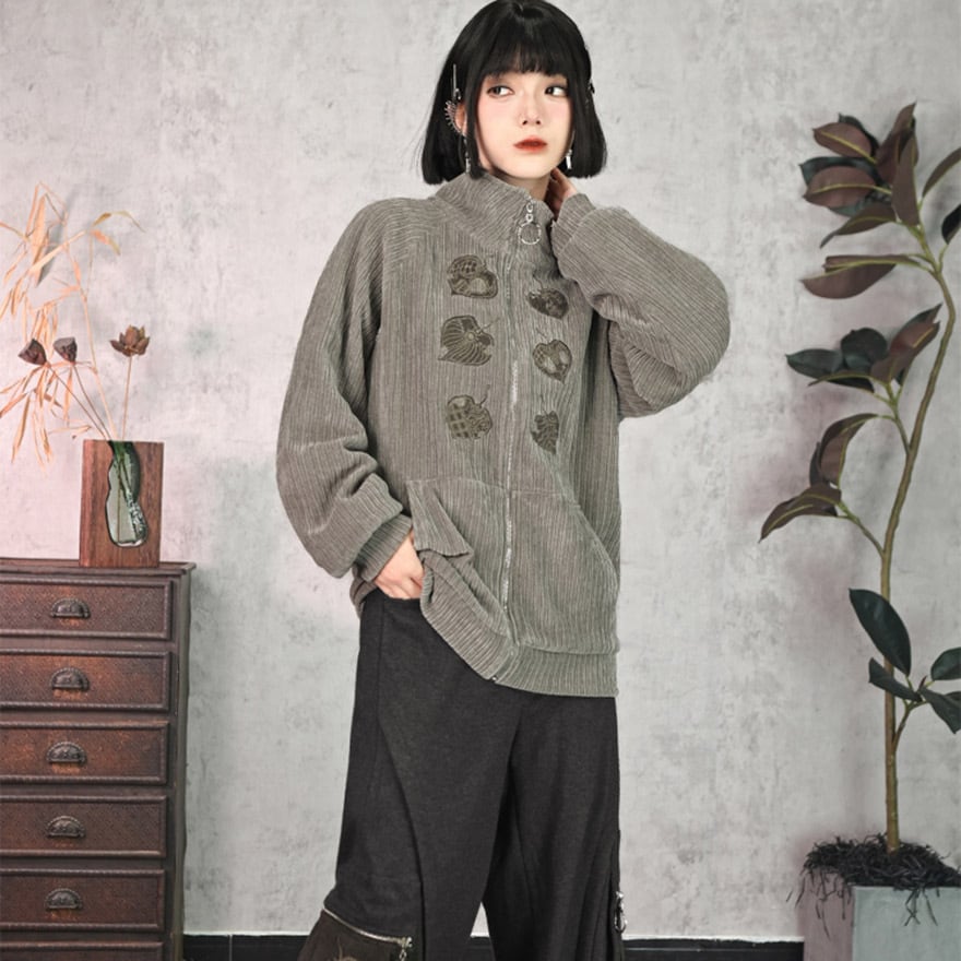 サブカル系 中華風 レトロ 刺繍入り ハイネック 裏起毛 スウェット カーディガン 古怪舎