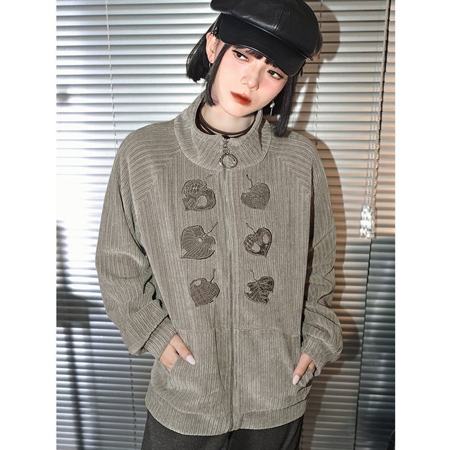 首元まで暖かいハイネック仕様で、裏起毛のため寒い季節にもぴったり。個性的な葉っぱモチーフの刺繍が、コーディネートのアクセントになります。