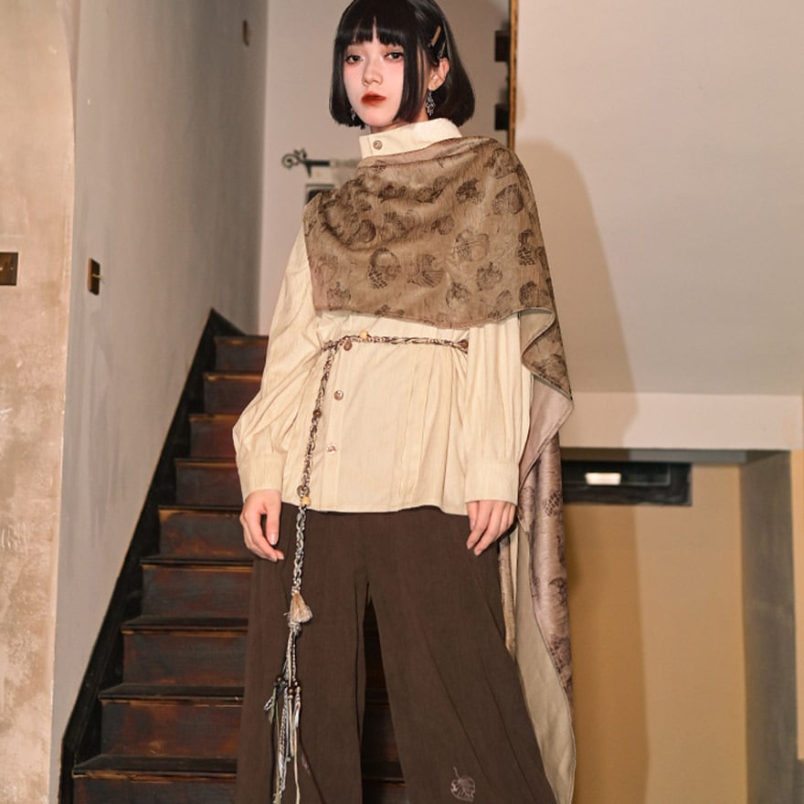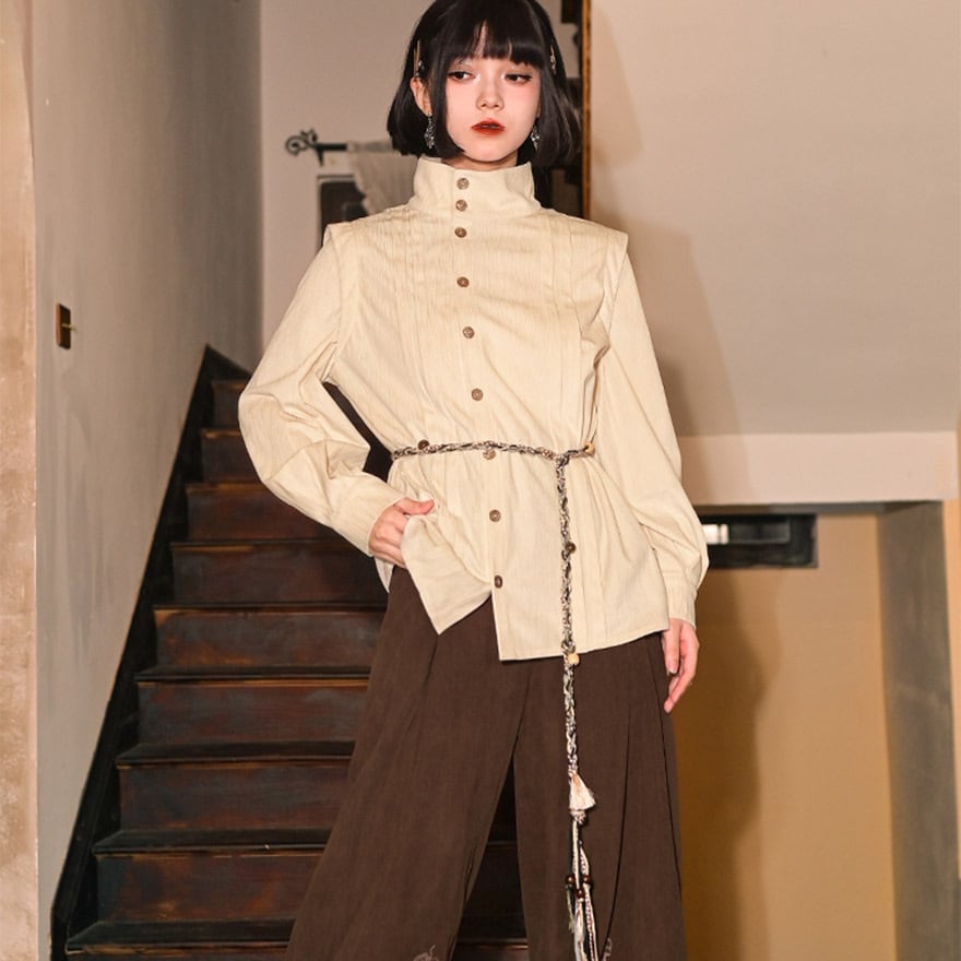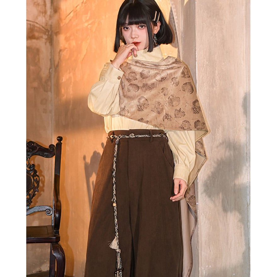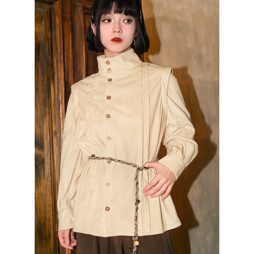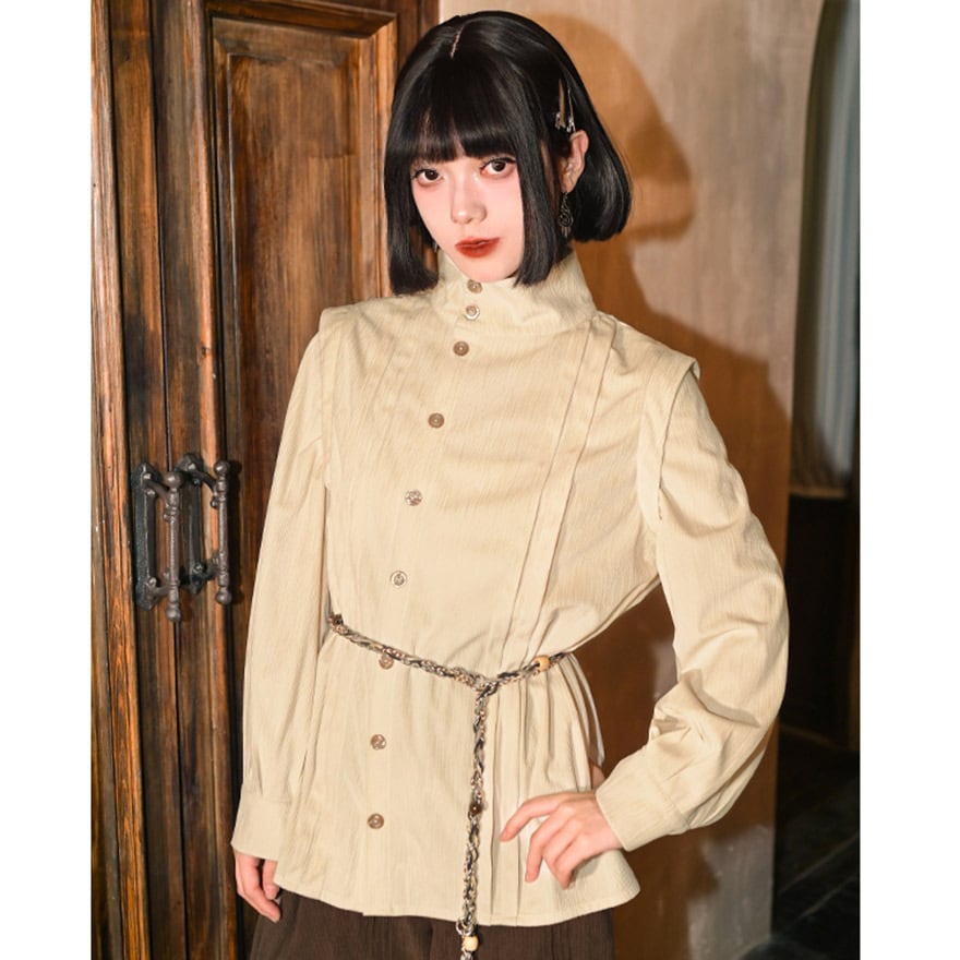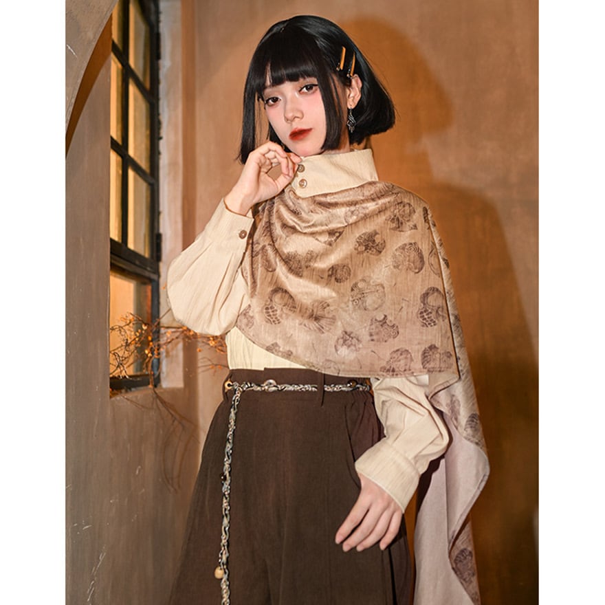 サブカル系 中華風 取り外し可能 ケープ スタンドカラー シャツ 古怪舎