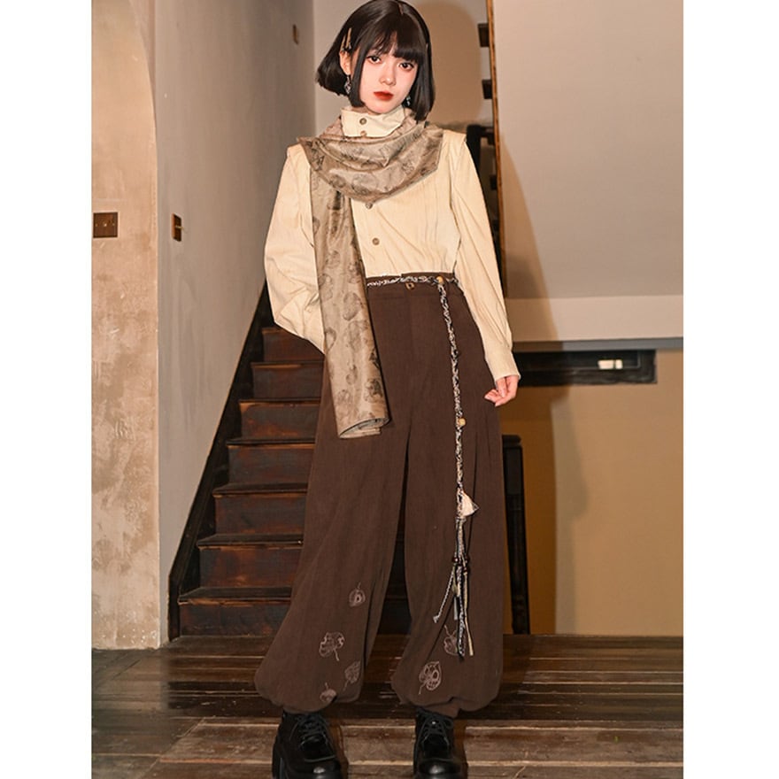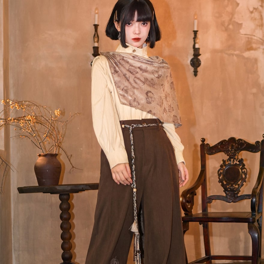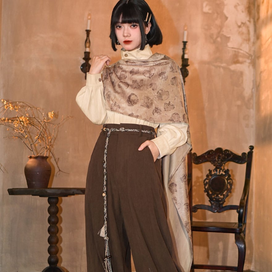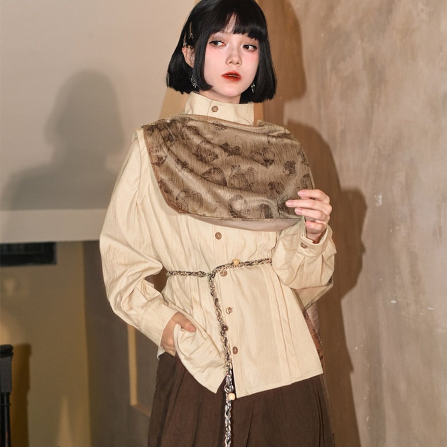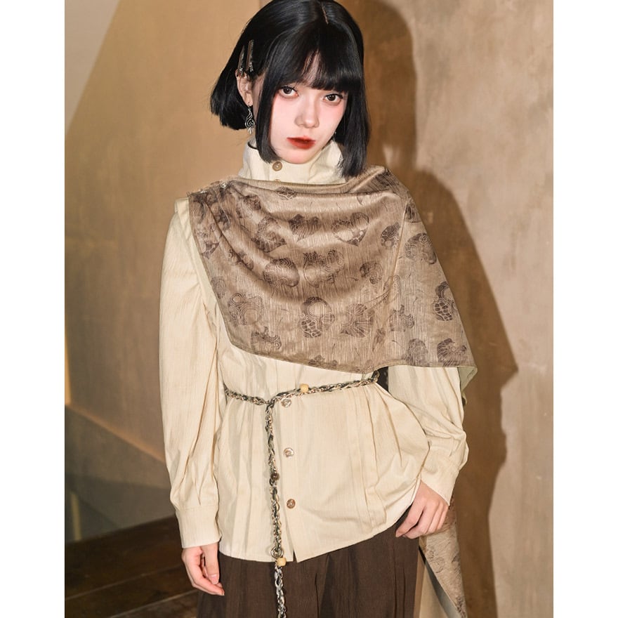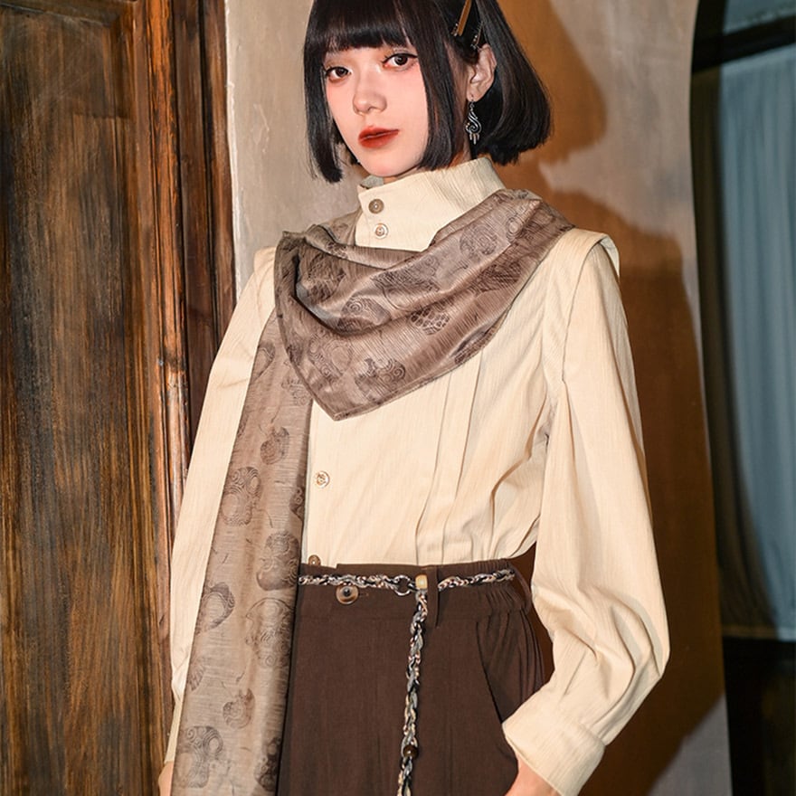 サブカル系 中華風 取り外し可能 ケープ スタンドカラー シャツ 古怪舎