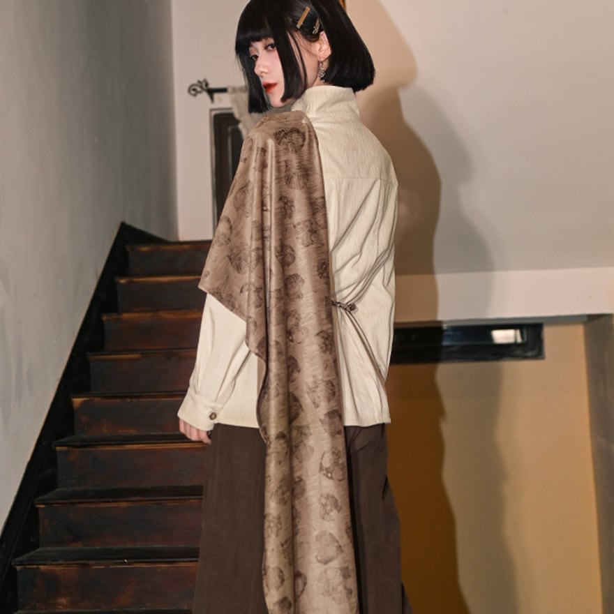 関連キーワード: #サブカル系 #中華風 #スタンドカラーシャツ #アシンメトリー #デザインシャツ #個性的 #モード系 #古怪舎 #ケープ #2WAY