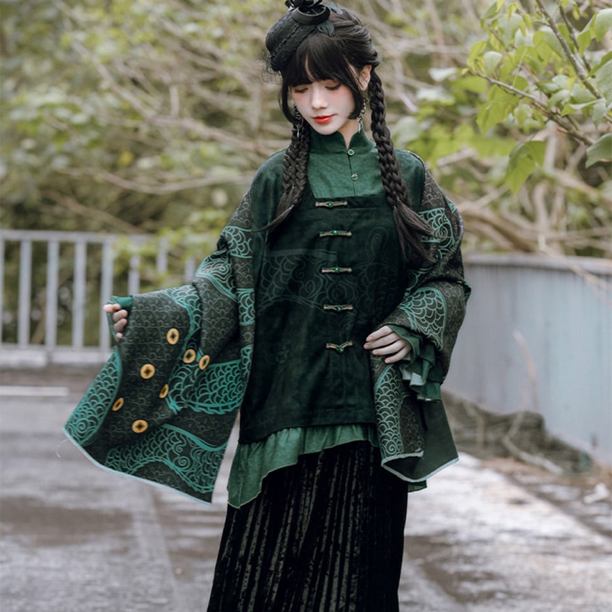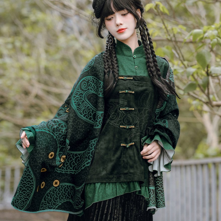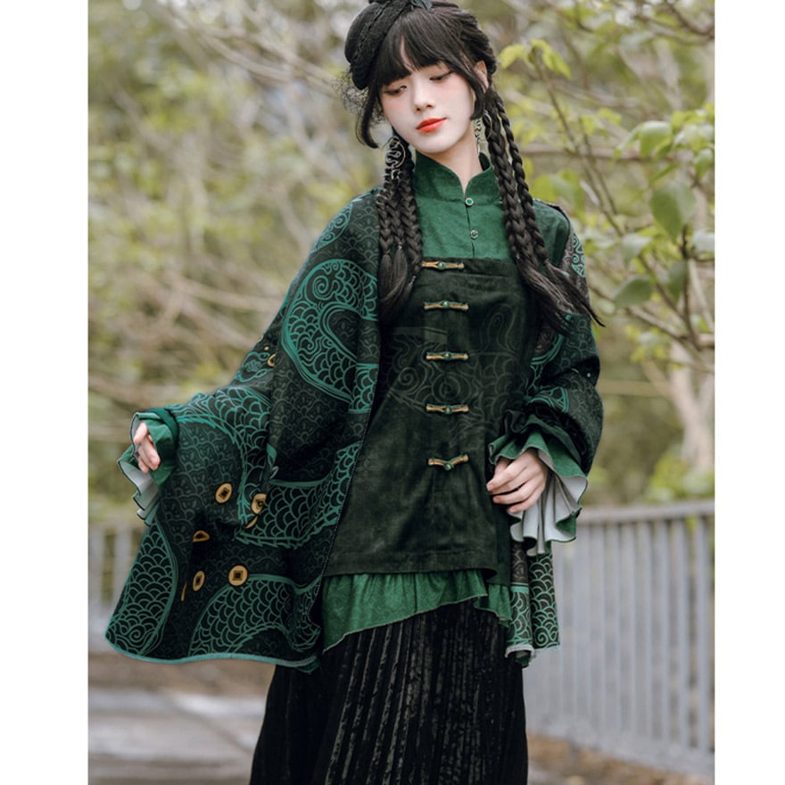 シンプルな服装にさっと羽織るだけで、一気にダークで荘厳な中華風の世界観を演出できる主役級のアイテム。
