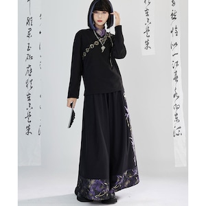 関連キーワード: #サブカル #中華風 #チャイナ #トップス #長袖 #月 #刺繍 #アシンメトリー #モード系 #個性的 #黒