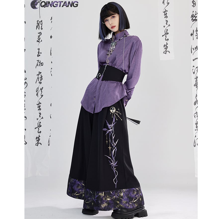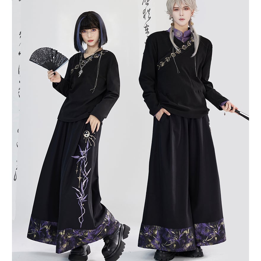 関連キーワード: #サブカル #中華風 #チャイナ #ワイドパンツ #袴パンツ #刺繍 #陰陽 #ジェンダーレス #ユニセックス #モード系 #黒 #紫 #個性的