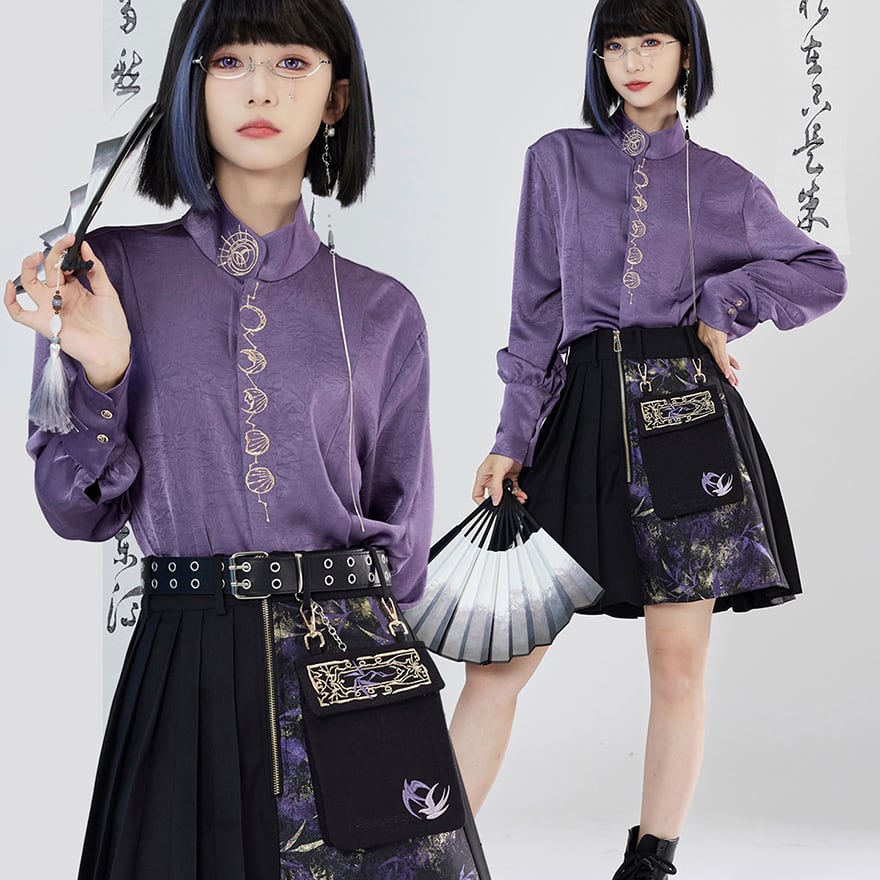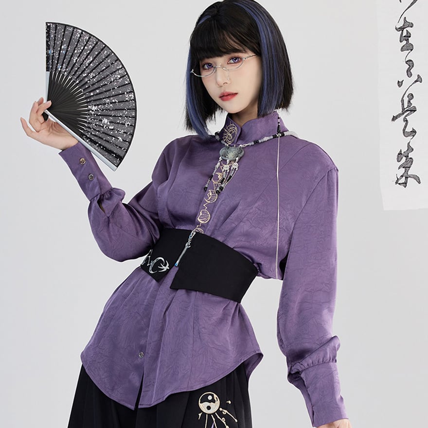 関連キーワード: #サブカル #中華風 #チャイナシャツ #長袖シャツ #刺繍 #月 #ジェンダーレス #ユニセックス #モード系 #紫 #個性的 #上品