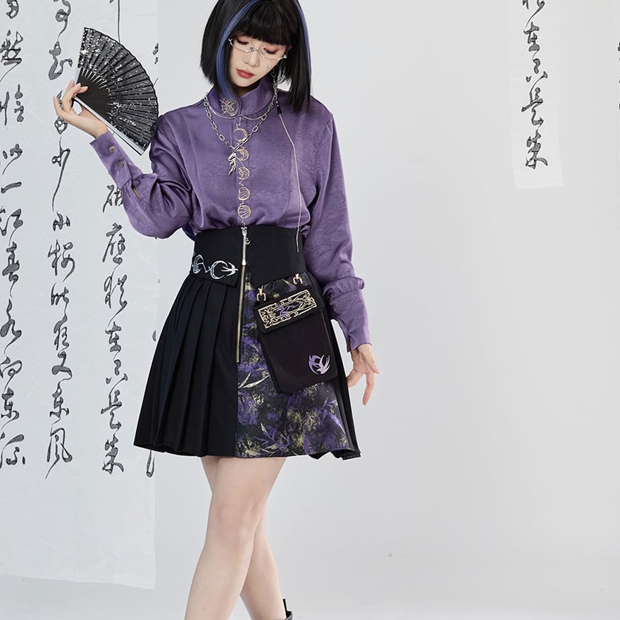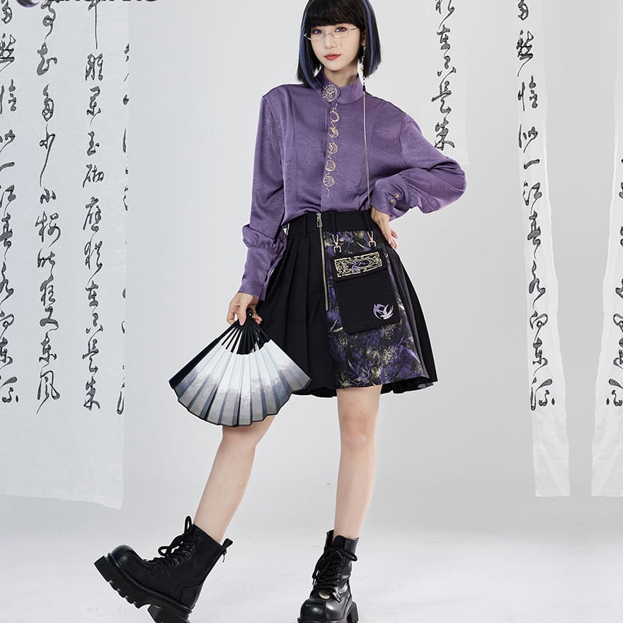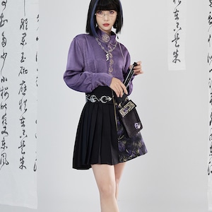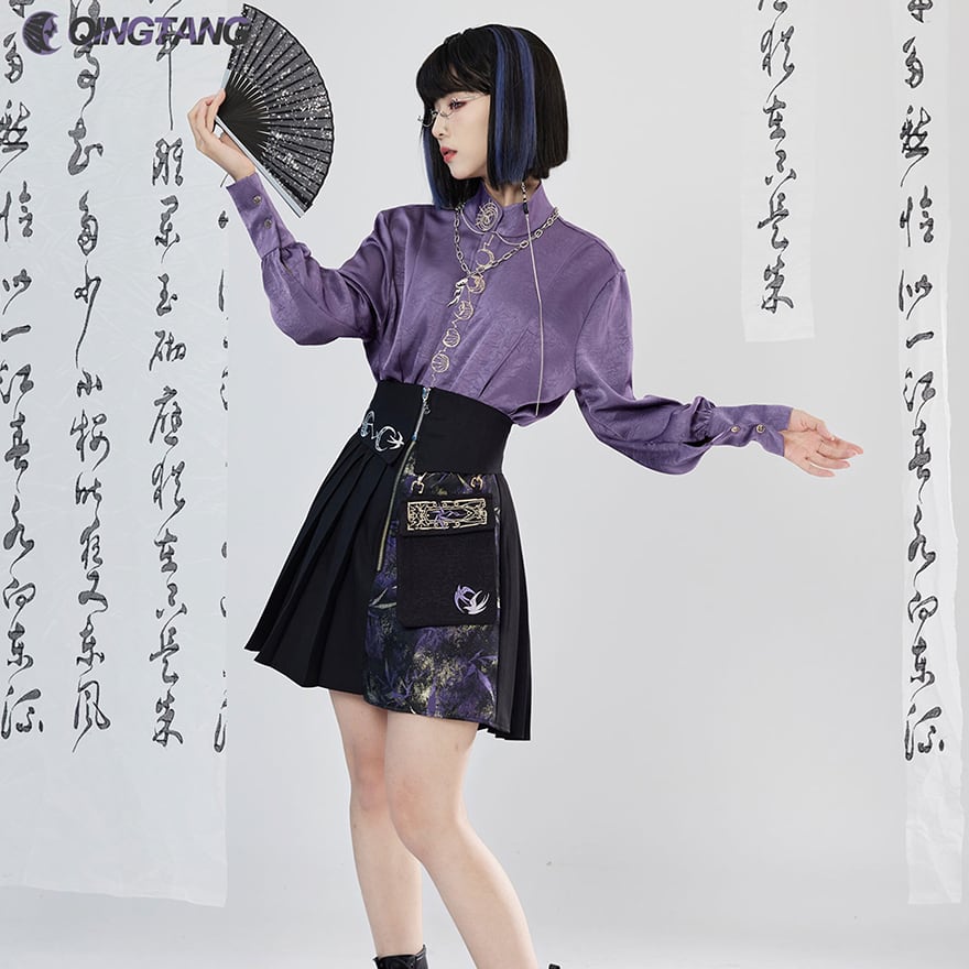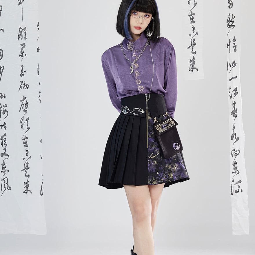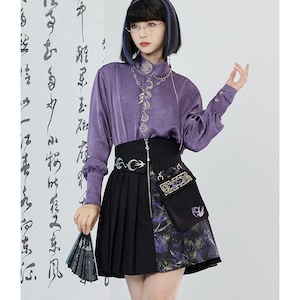 関連キーワード: #サブカル #中華風 #チャイナ #プリーツスカート #ミニスカート #アシンメトリー #刺繍 #個性的 #ストリートファッション #パンク #黒 #紫