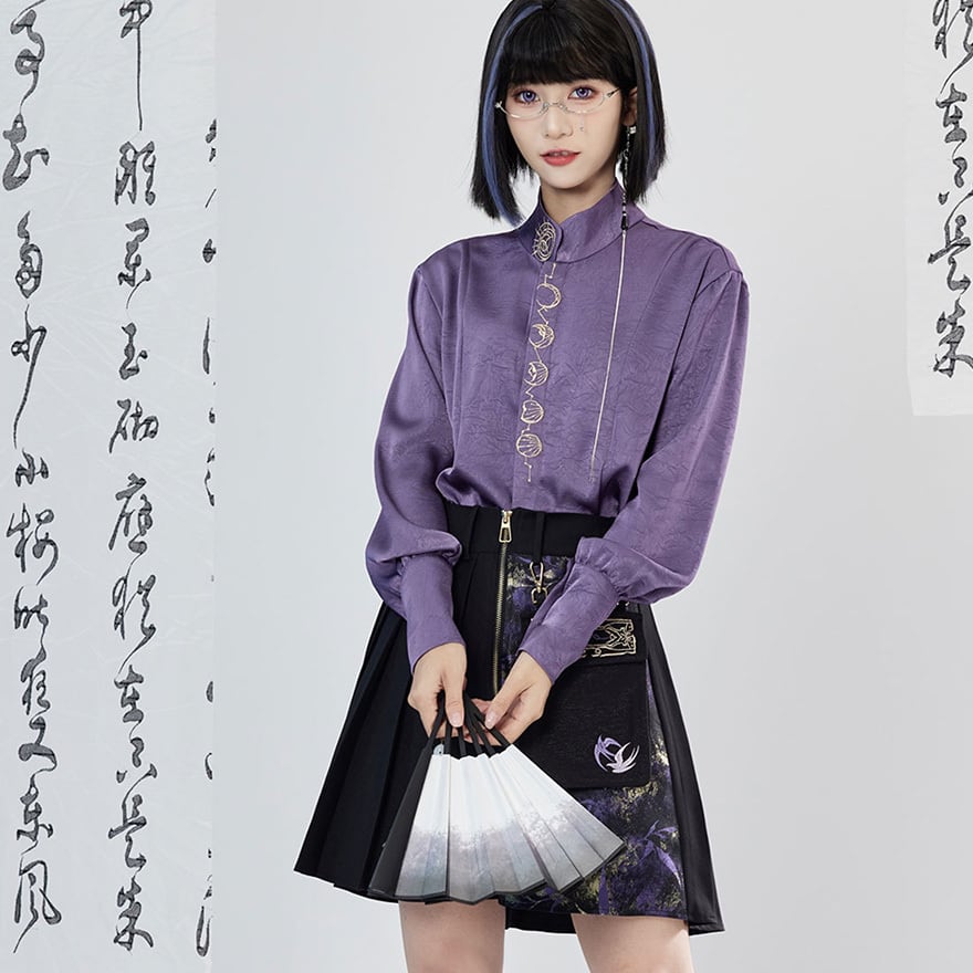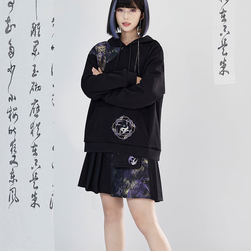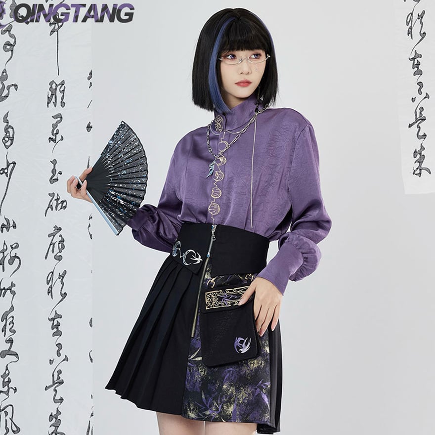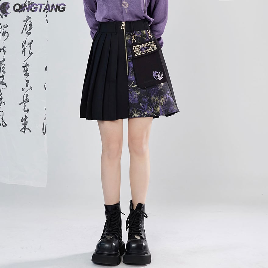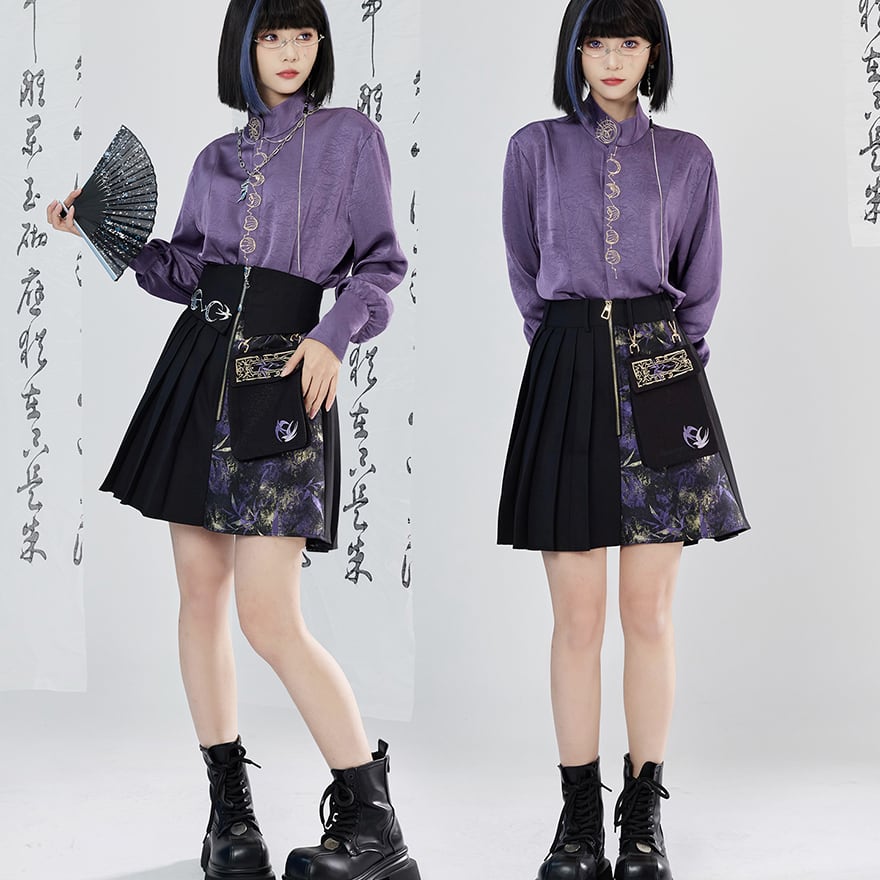 関連キーワード: #サブカル #中華風 #チャイナ #プリーツスカート #ミニスカート #アシンメトリー #刺繍 #個性的 #ストリートファッション #パンク #黒 #紫