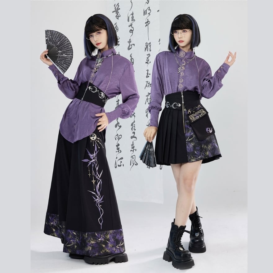 関連キーワード: #サブカル #中華風 #チャイナ #ウエストベルト #コルセットベルト #刺繍 #月 #鳥 #ジッパー #個性的 #モード系 #黒