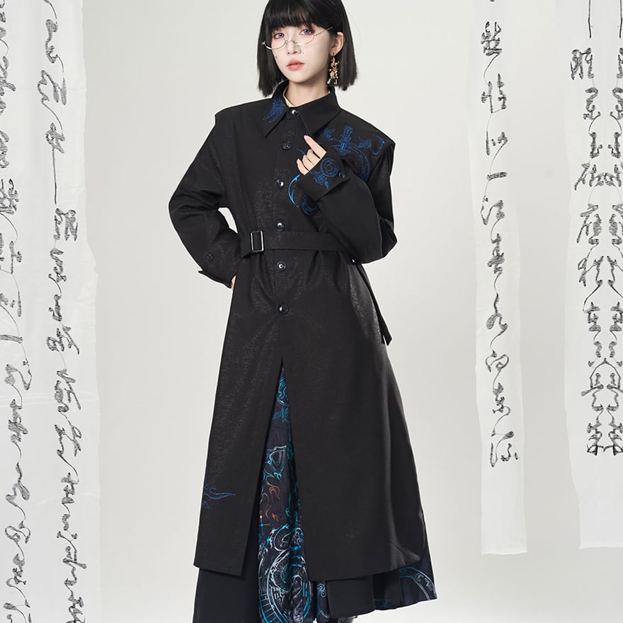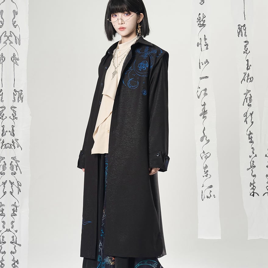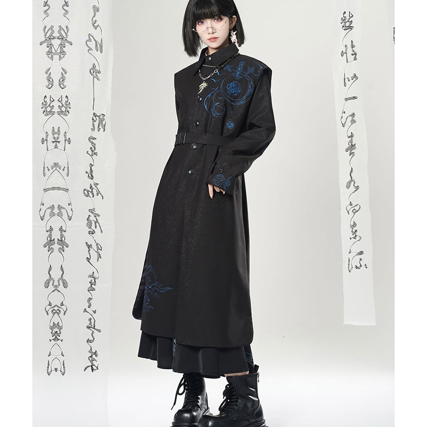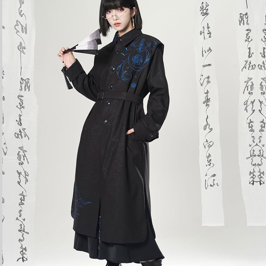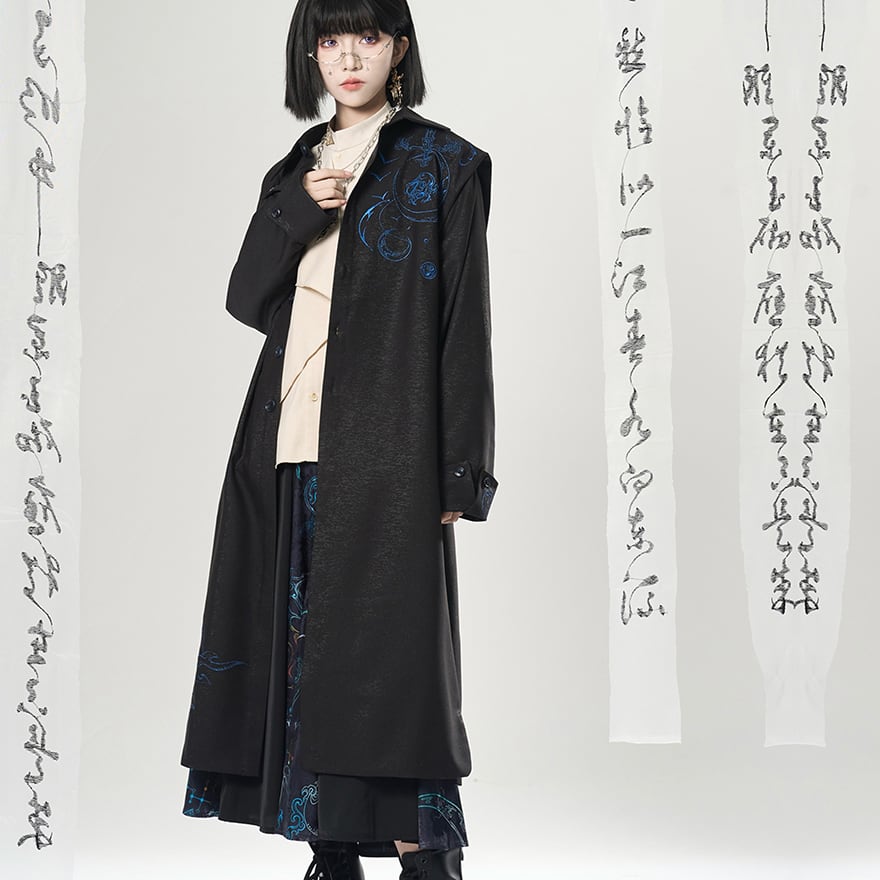 サブカル系 中華風 ロングコート 刺繍 ユニセックス 卿棠