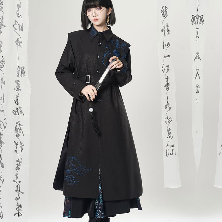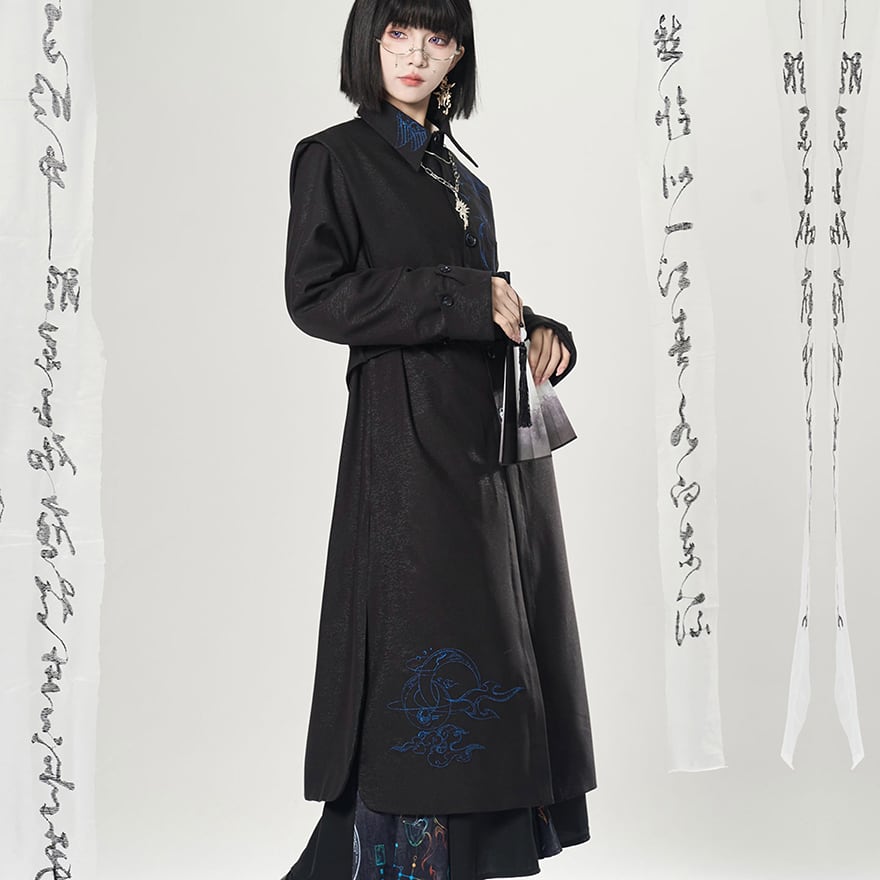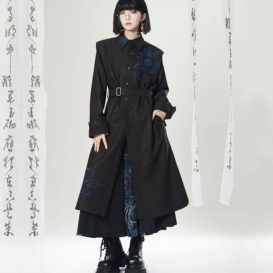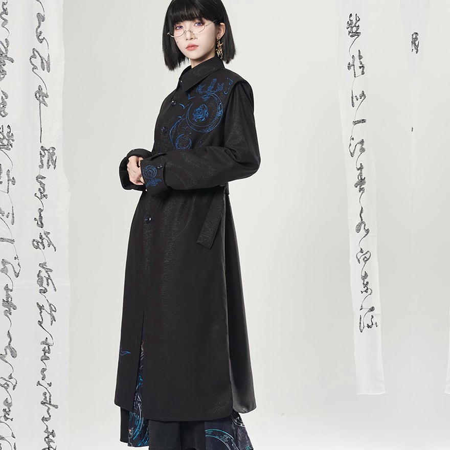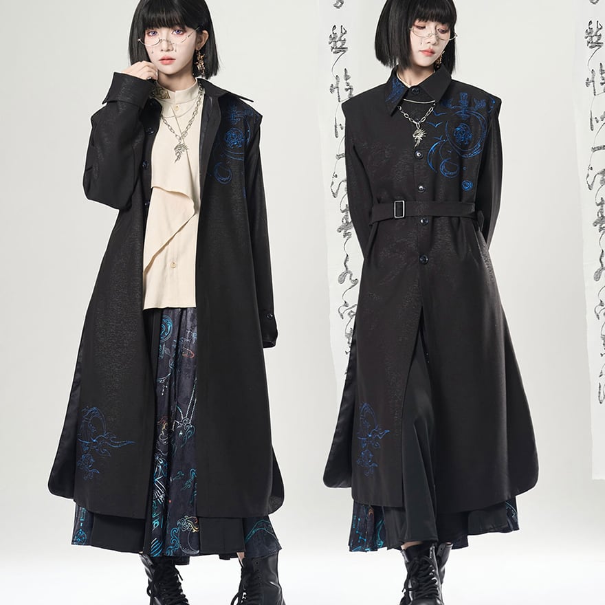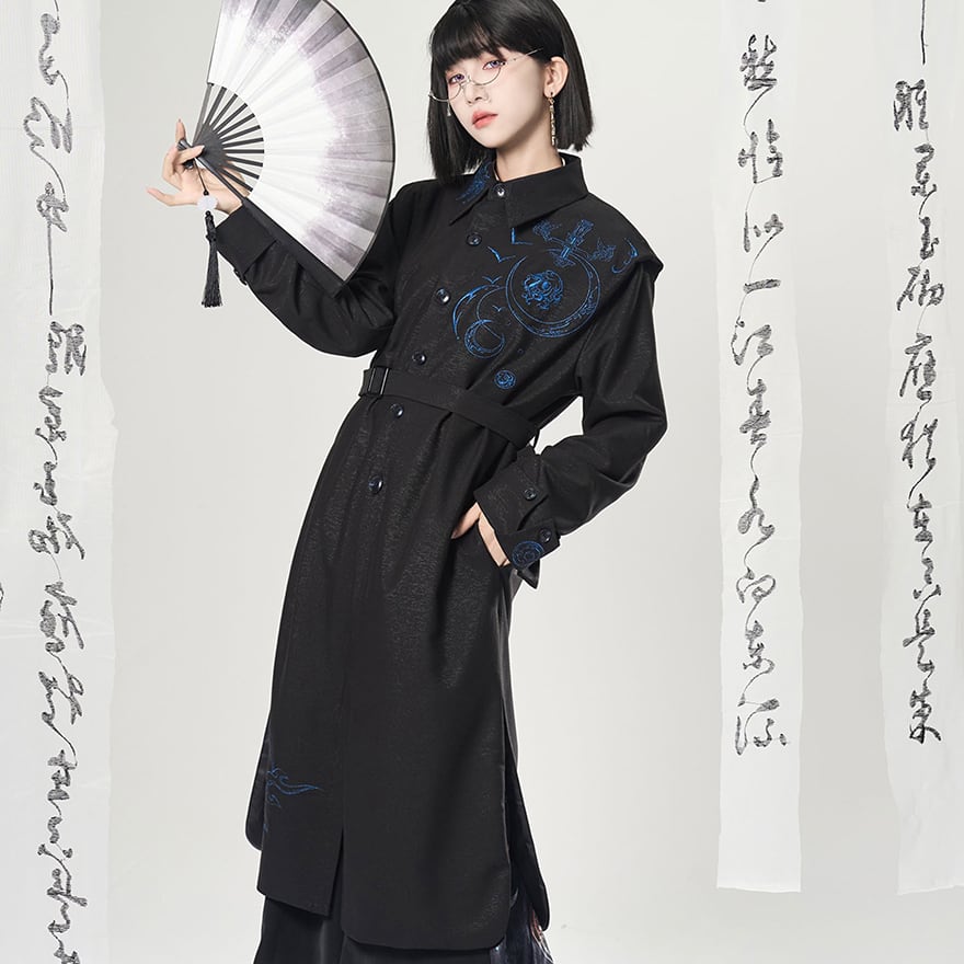 サブカル系 中華風 ロングコート 刺繍 ユニセックス 卿棠