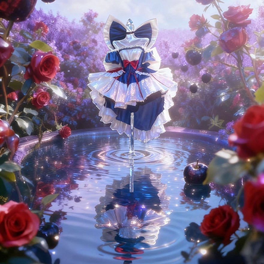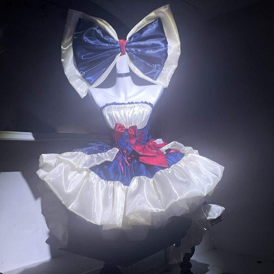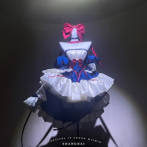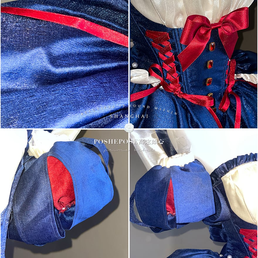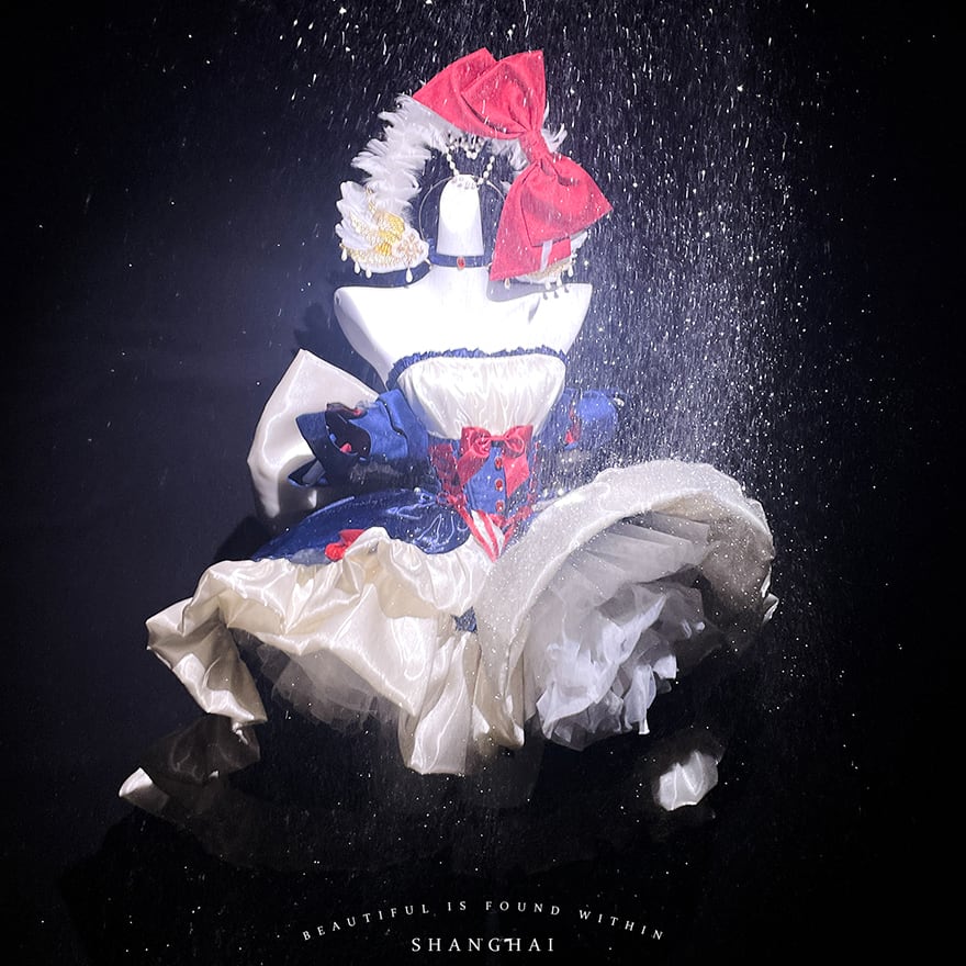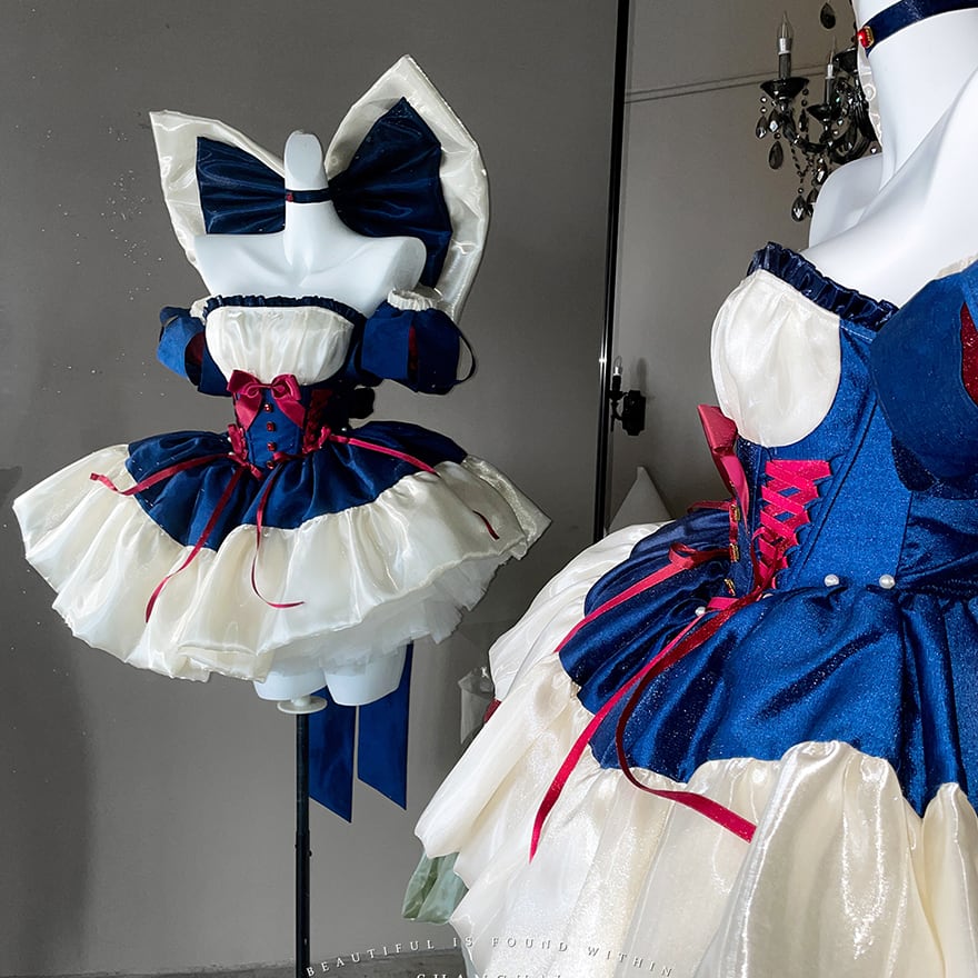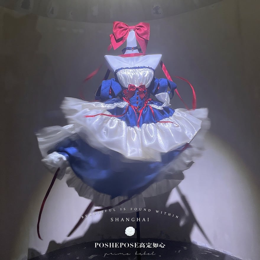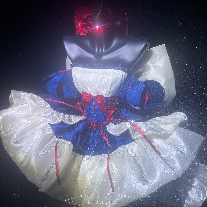 誰もが知る物語のお姫様をイメージさせる、ロイヤルブルー、ピュアホワイト、レッドのコントラストが美しいロリータドレスです。