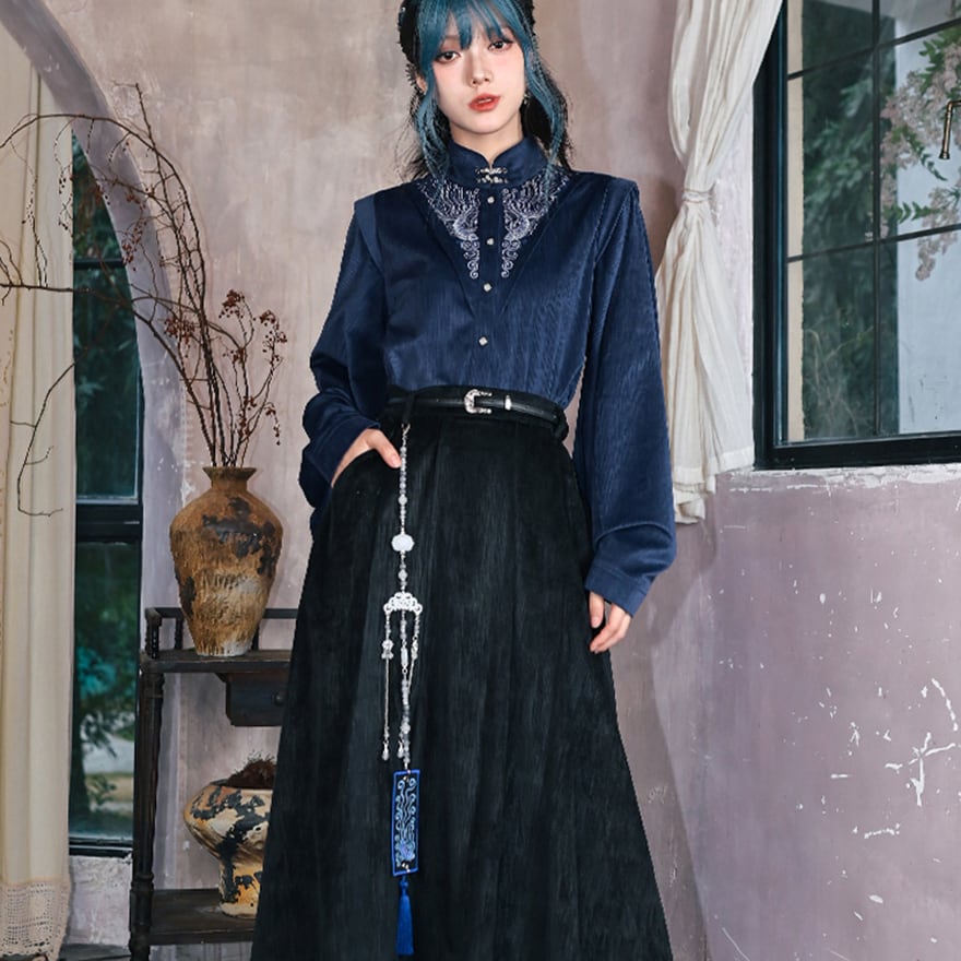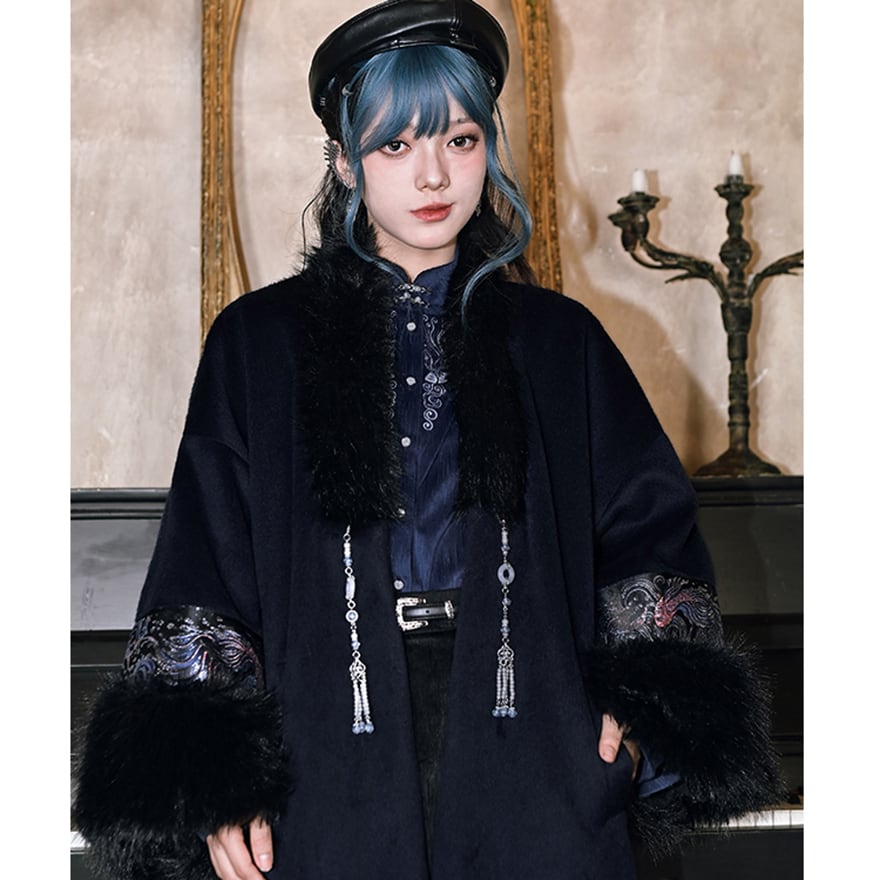 特に、チャイナ風のブラウスやコートとの相性は抜群で、世界観をより一層深めてくれます。