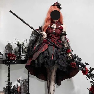 【ライブ・撮影衣装】ゴシック 薔薇柄ボリュームレイヤードフレアドレス 豪華セット