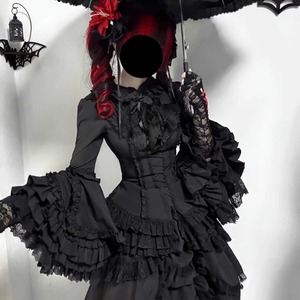 【舞台・撮影衣装】本格ゴシック 黒ロリ 豪華フリル袖 ティアードレイヤードドレス 予約