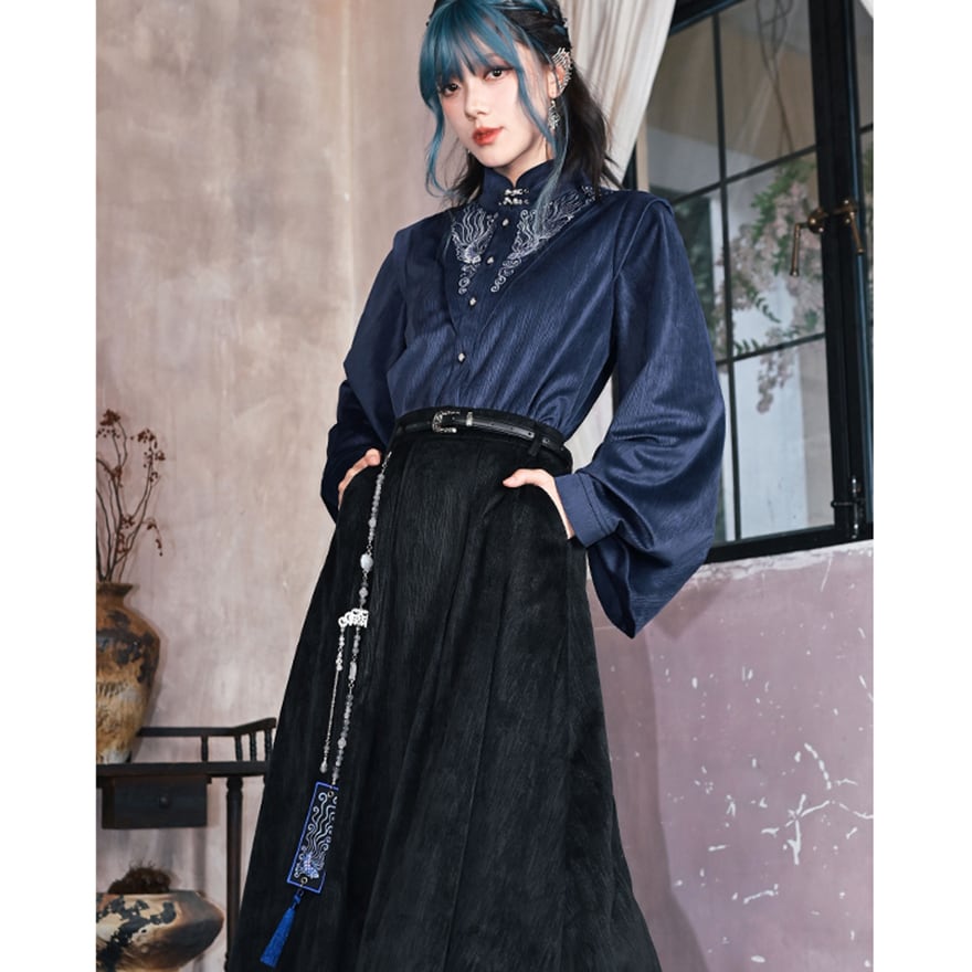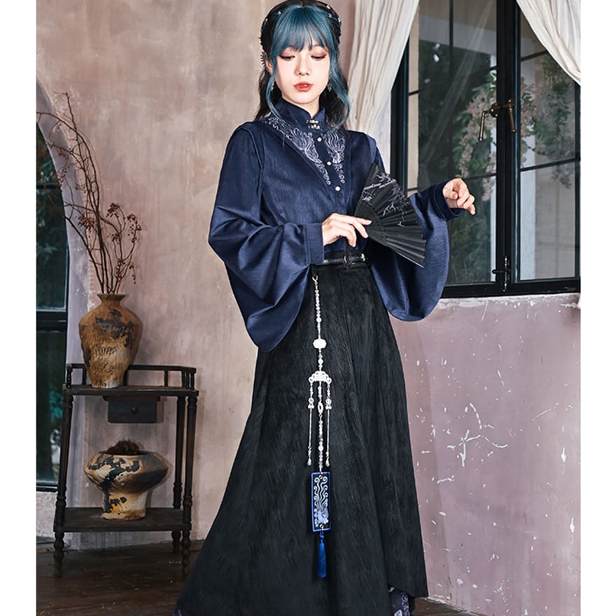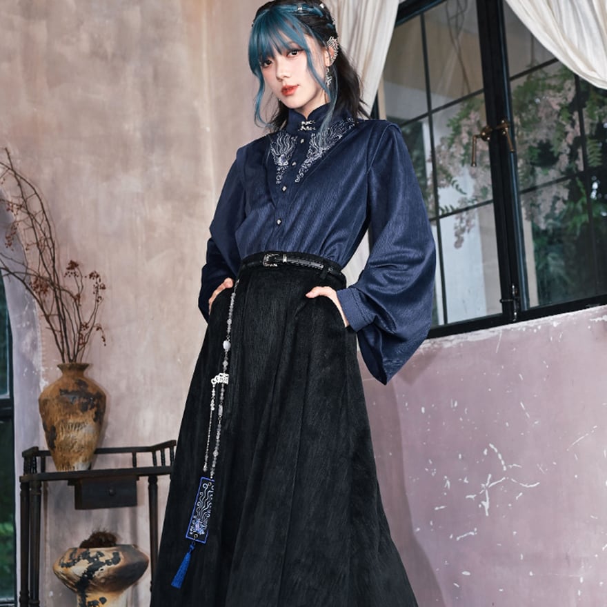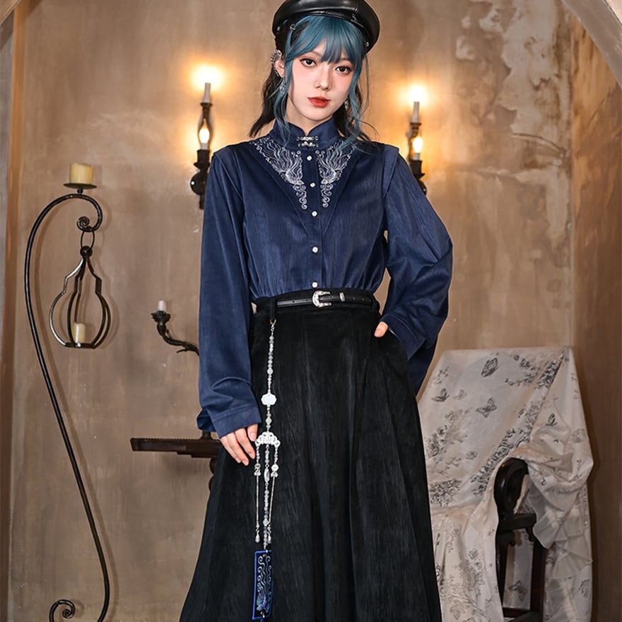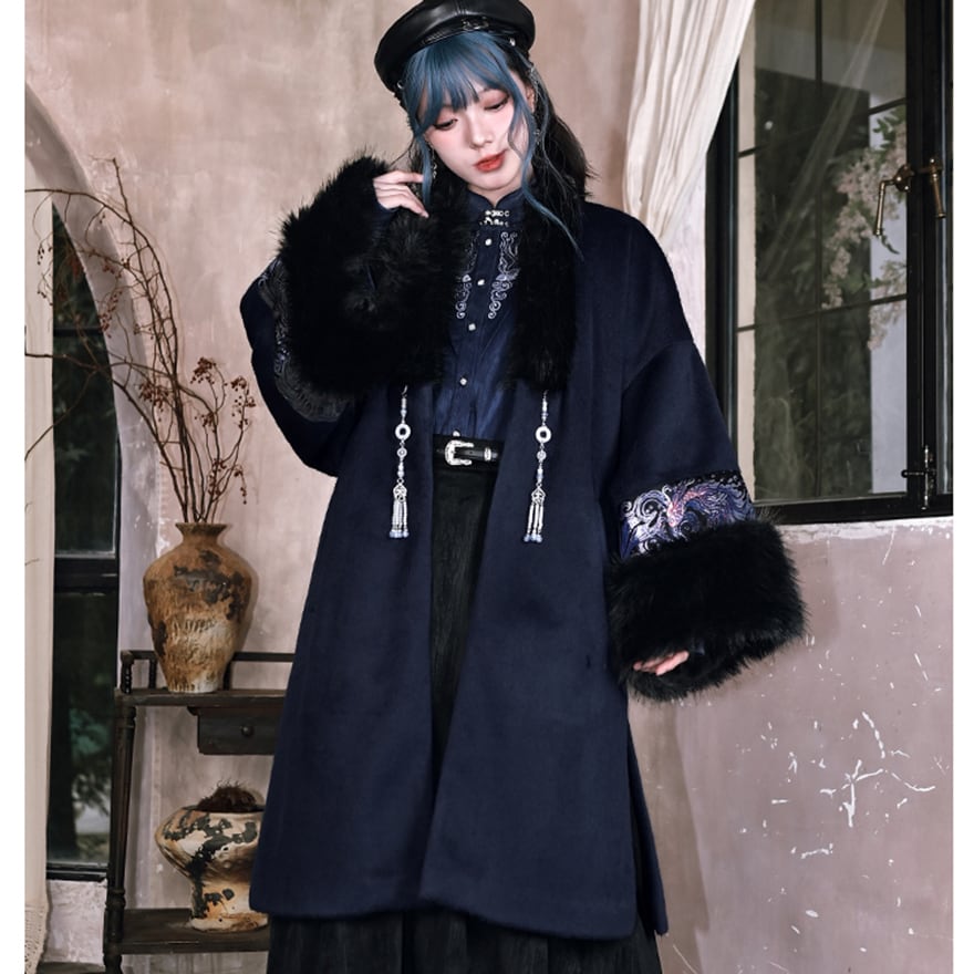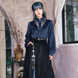 襟元のバルモアデザインが程よいクラシック感をプラスし、スカートにもパンツにも合わせやすい一着です。初心者の方でも、いつものコーディネートに取り入れるだけで、洗練された「大人の中華ロリータ」スタイルが完成します。