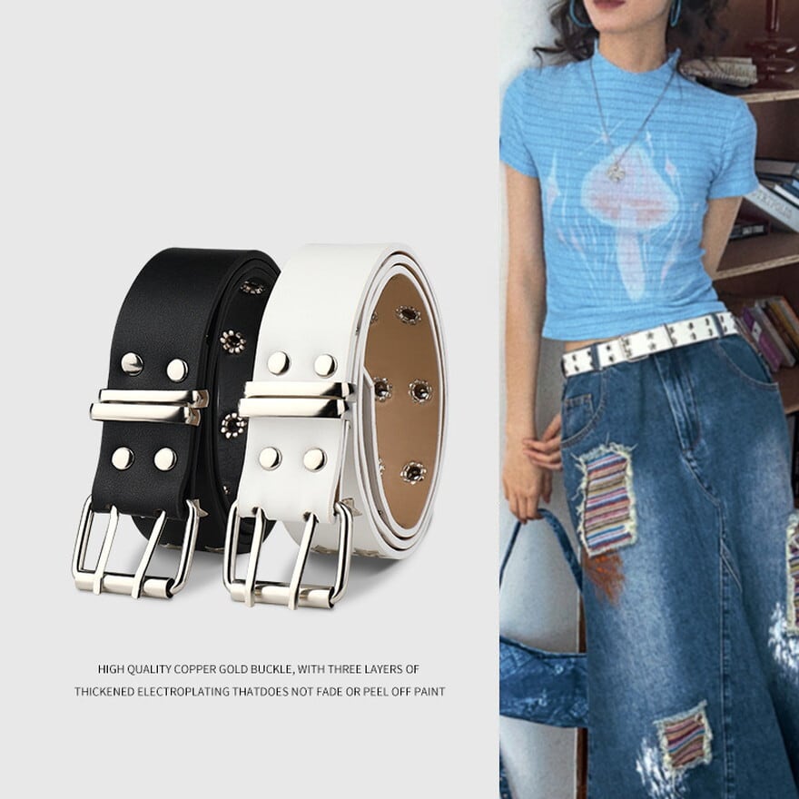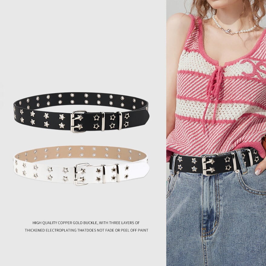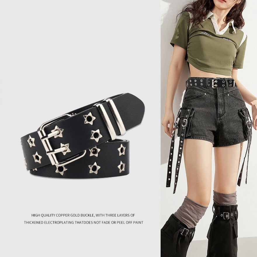 Y2K・ストリートに!サブカル系 星型ハトメ ダブルピンベルト 個性的 2000年代ファッション