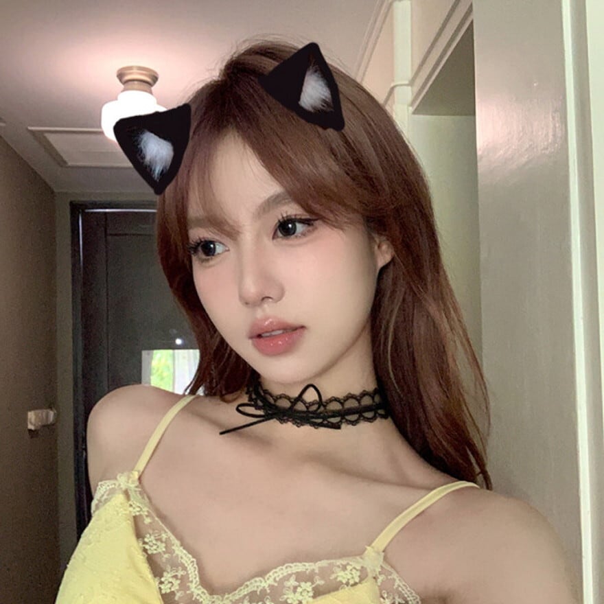 推し活・自撮りに!地雷系 猫耳カチューシャ&レースチョーカーセット 初心者向け 闇可愛い
