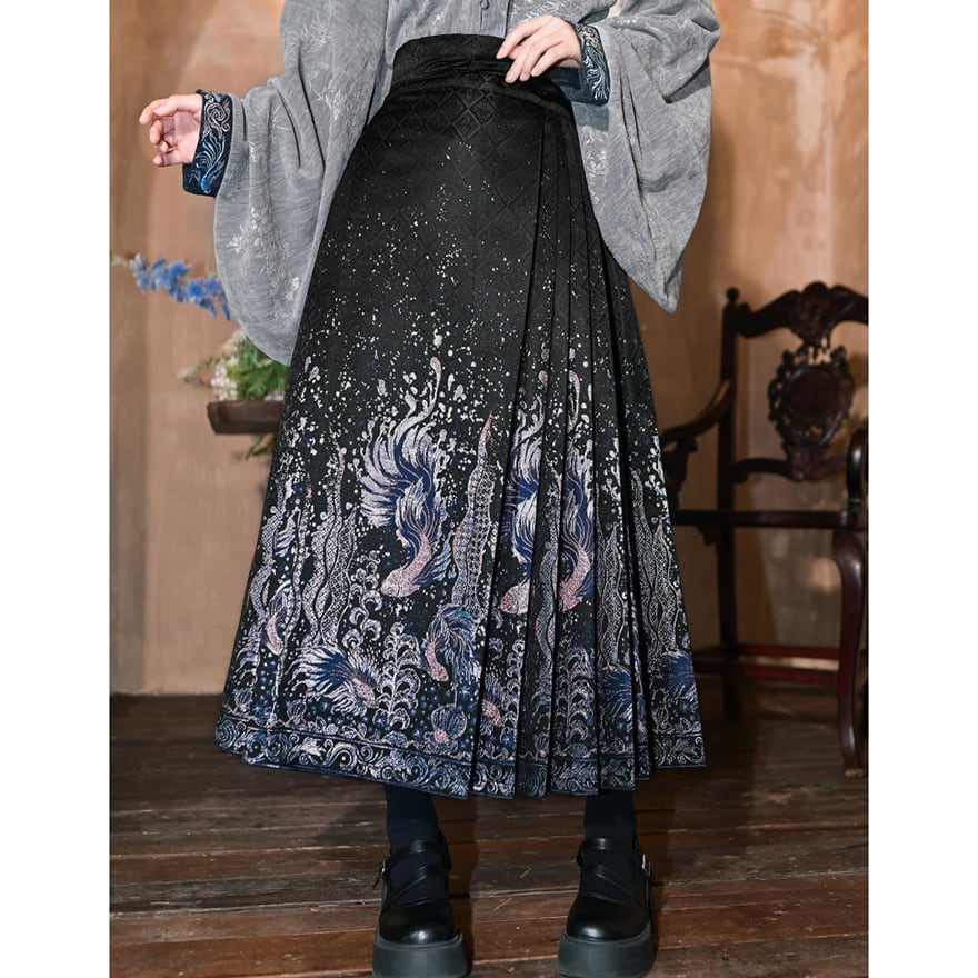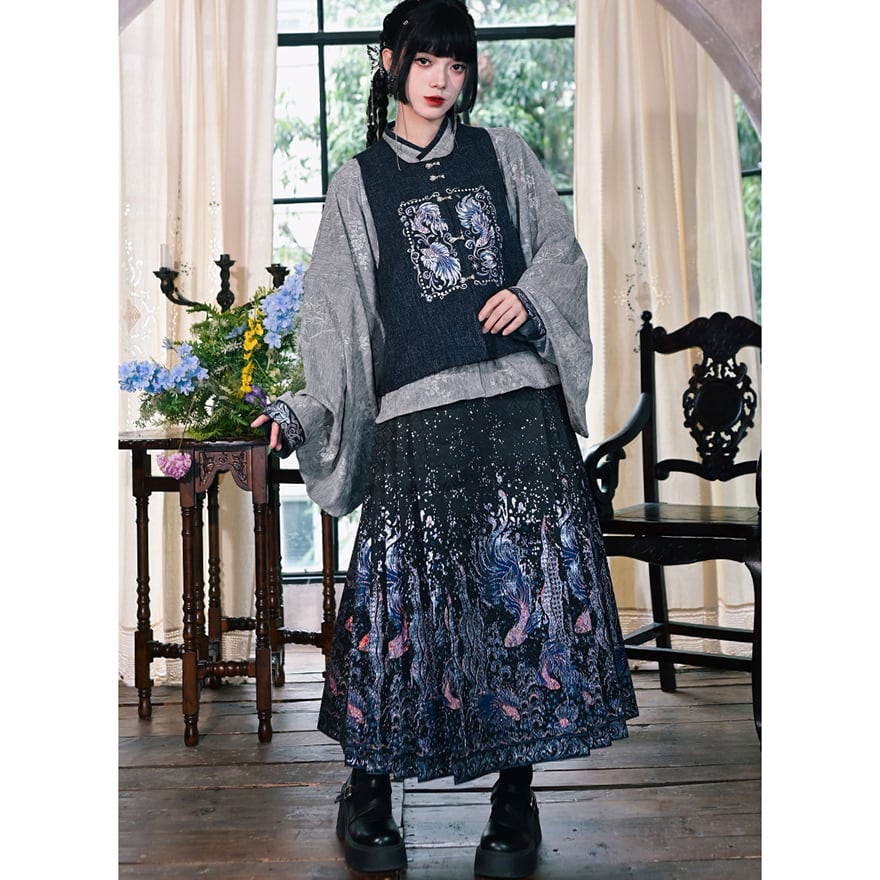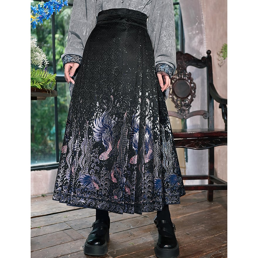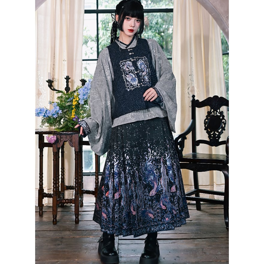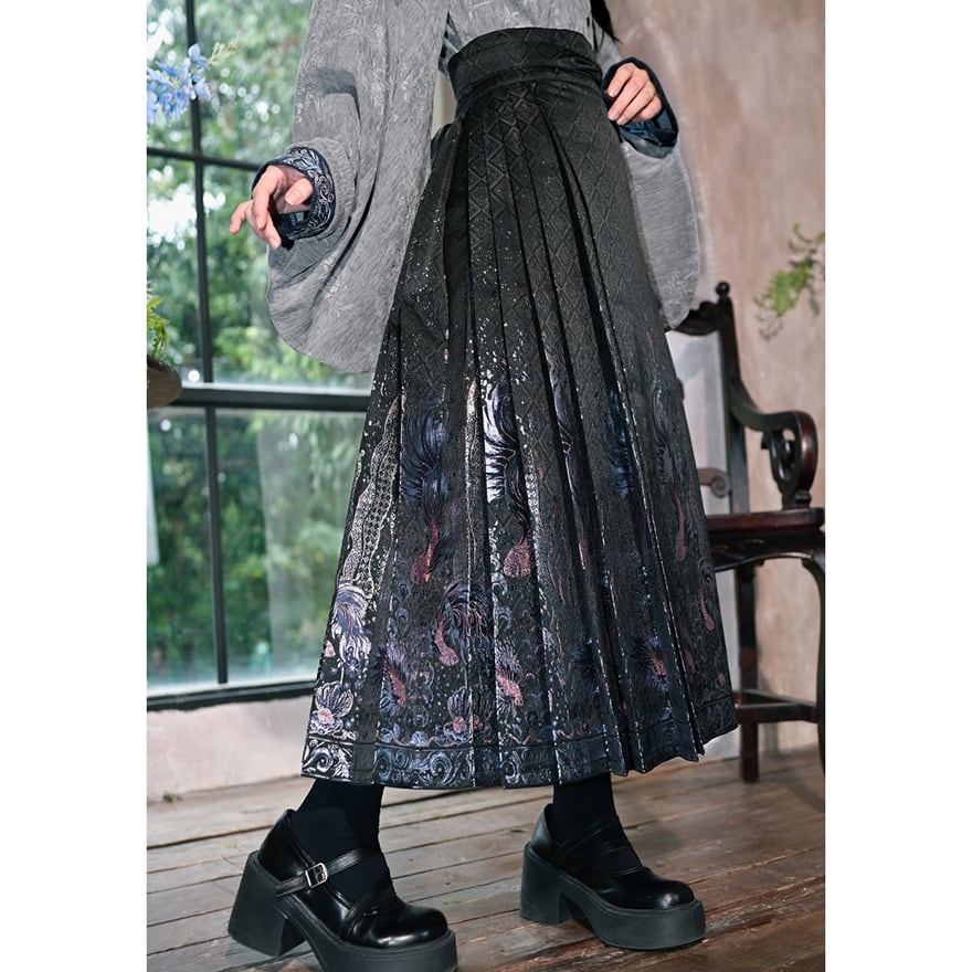 ライブ参戦服や推し活に!華やか中華風プリーツスカート 金魚刺繍×和モダン サブカル地雷系 古怪舎