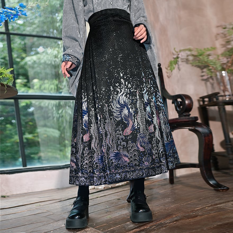 中華風とサブカル系を融合させた金魚刺繍が映える上品なプリーツスカートです。