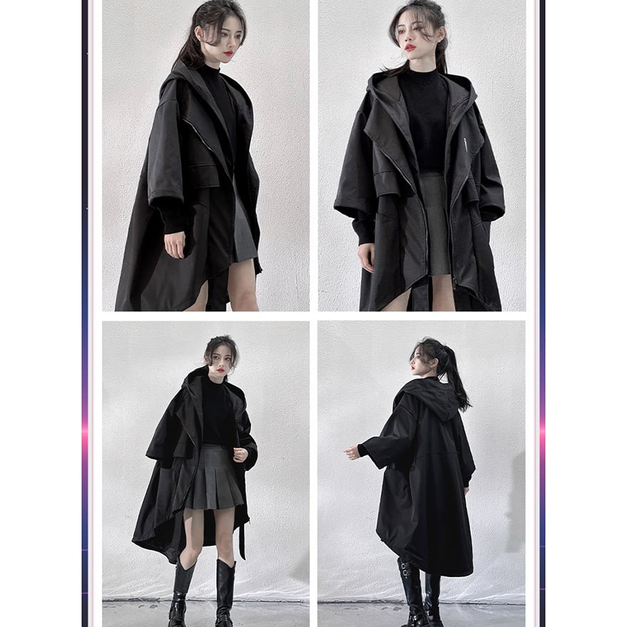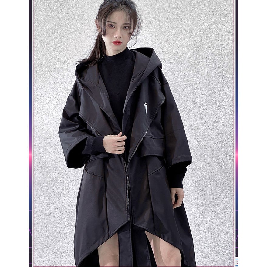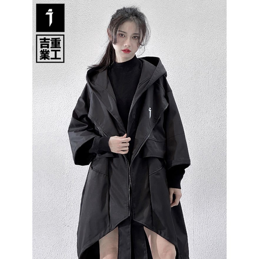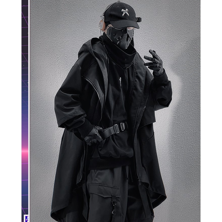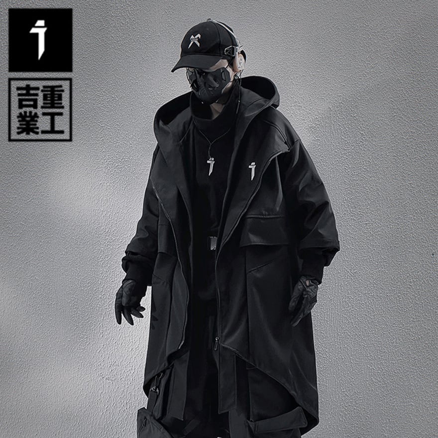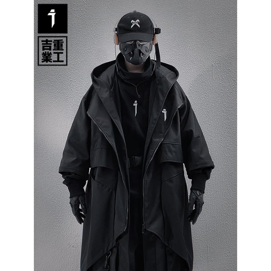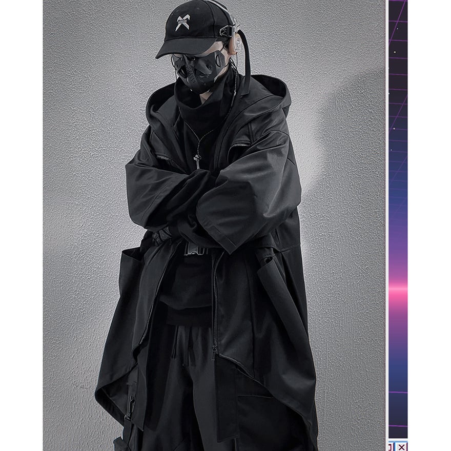 サイバーパンク アシンメトリー・タクティカルロングコート|地雷系・テックウェア・中華ゴシック