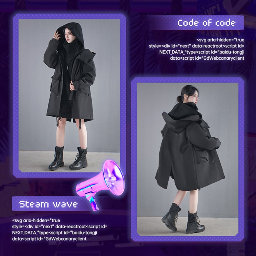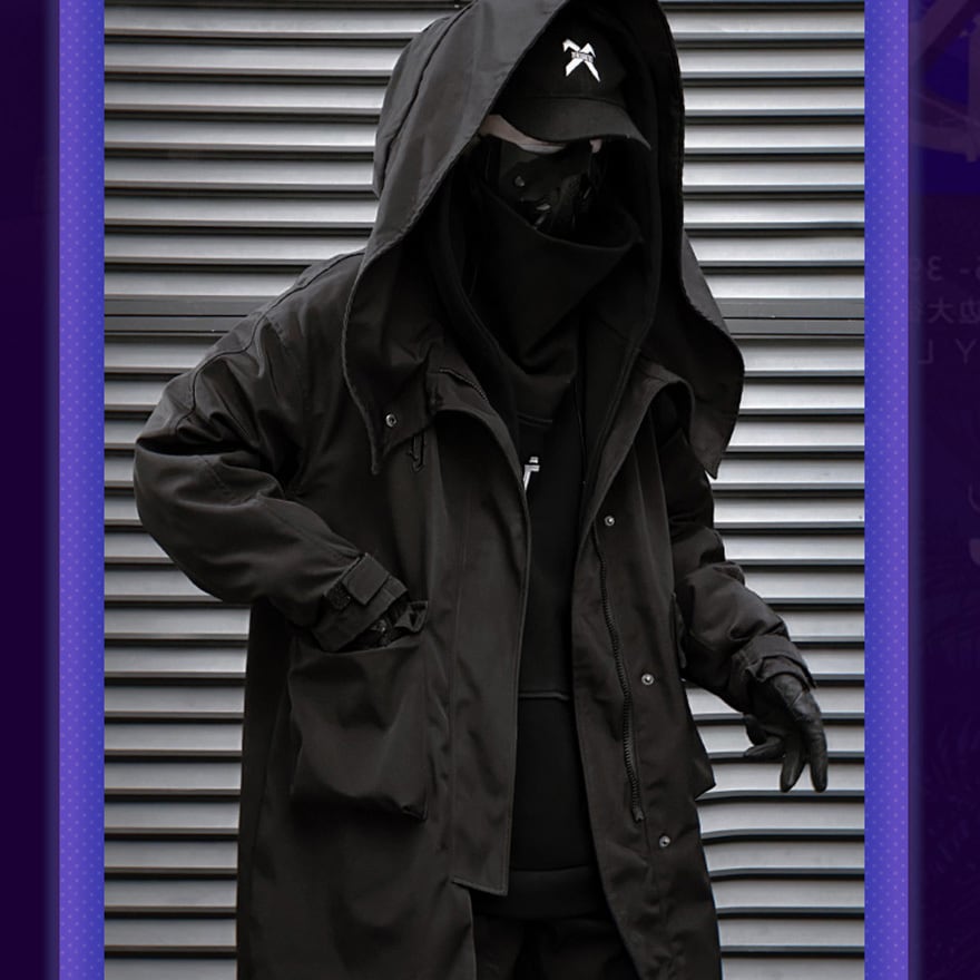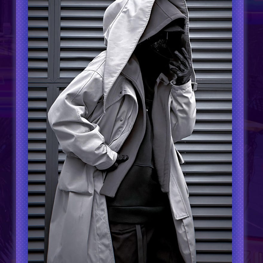 サイバーパンク フード付き サイバータクティカル・フィッシュテールロングコート|地雷系・テックウェア・中華ストリート