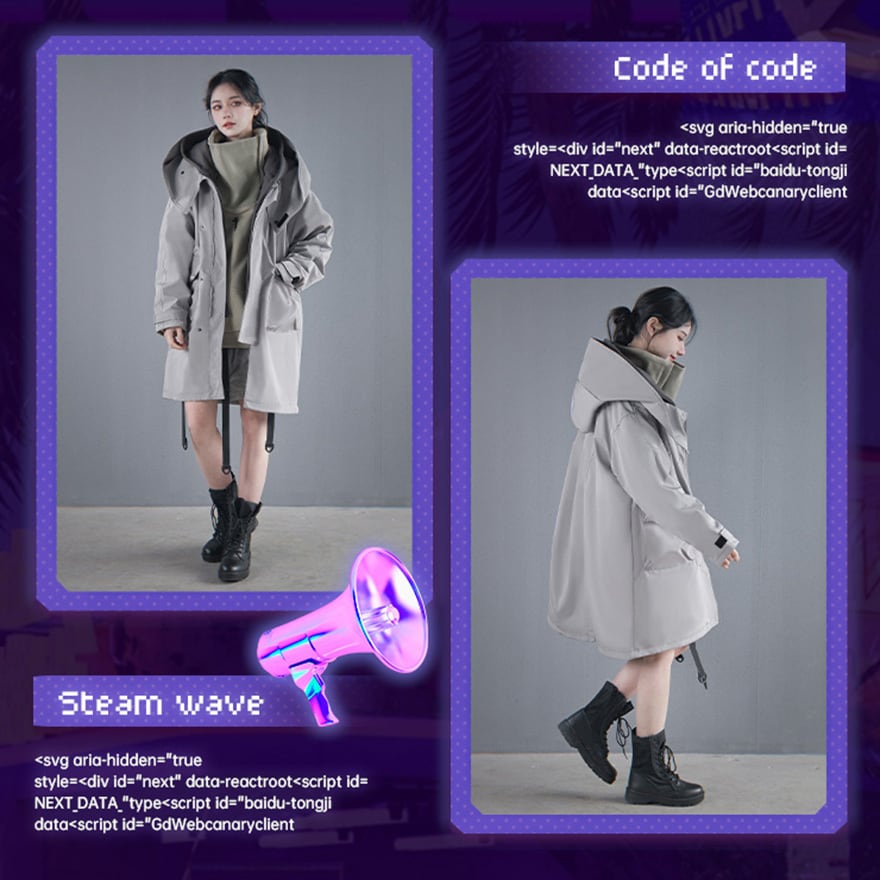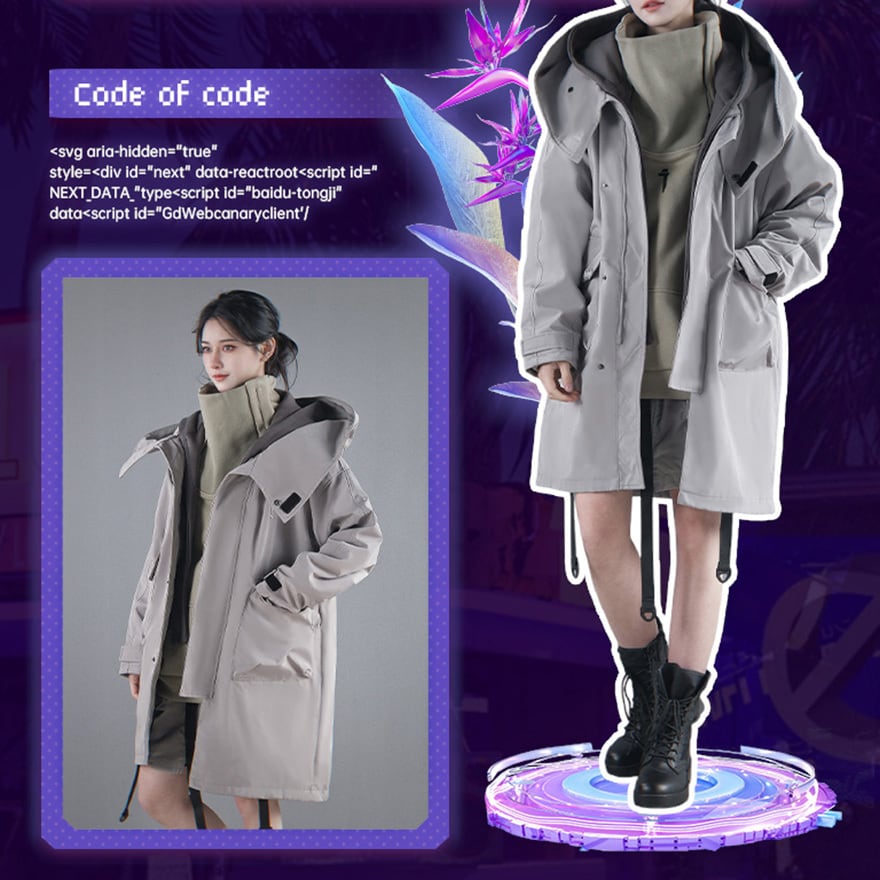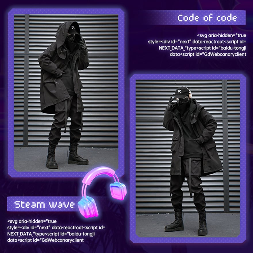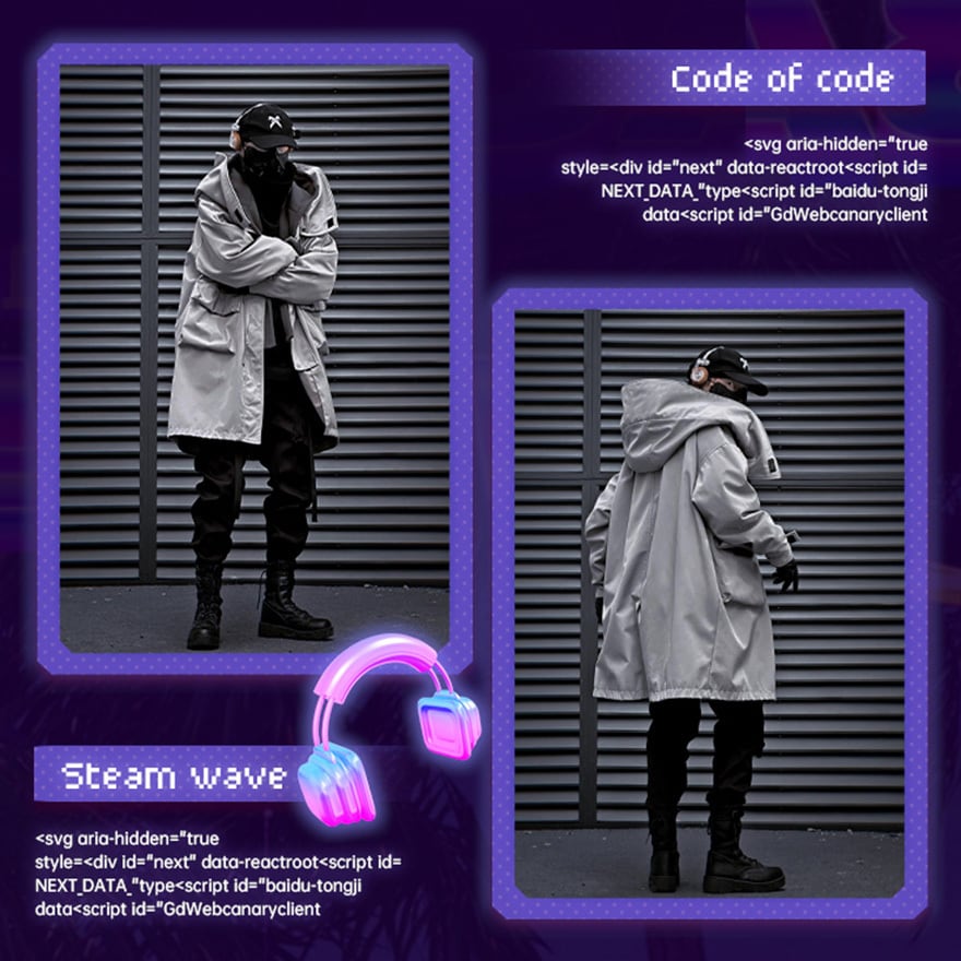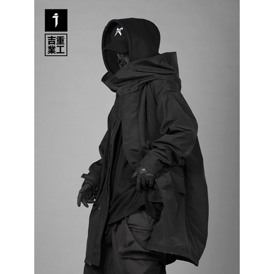 関連キーワード: #サイバーパンク #テックウェア #コート #ウィンドブレーカー #アウター #モード系 #ストリートファッション #ユニセックス #アシンメトリー #変形デザイン