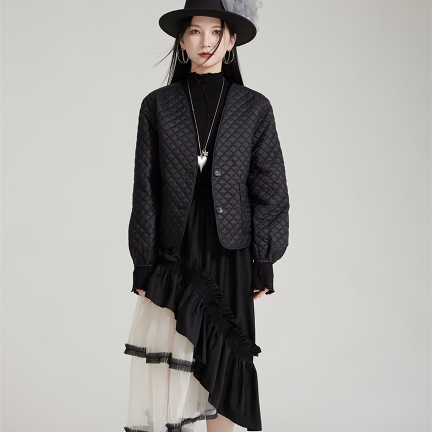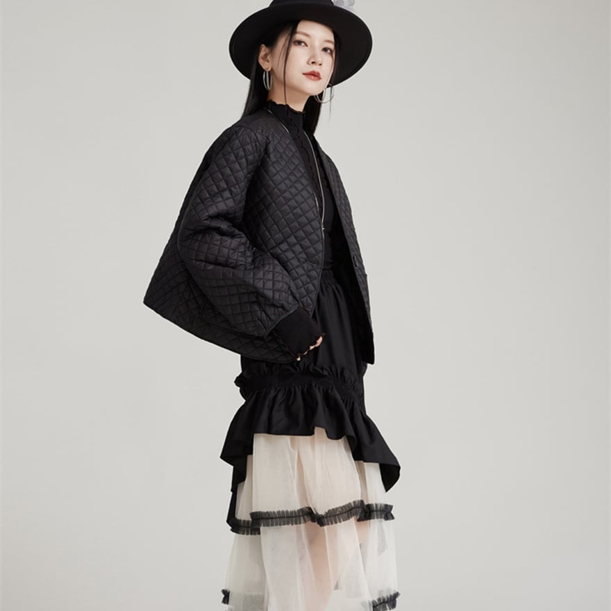関連キーワード: #モード系 #キルティングジャケット #ノーカラーコート #黒コーデ #通勤コーデ #大人カジュアル #30代コーデ #40代コーデ #秋冬アウター #中綿
