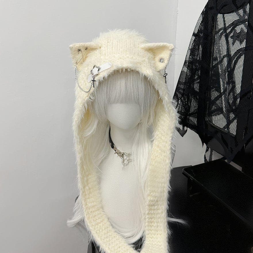 猫耳 ニット帽 パンク 地雷系 十字架 チェーン 飾り 安全ピン サブカル 原宿系