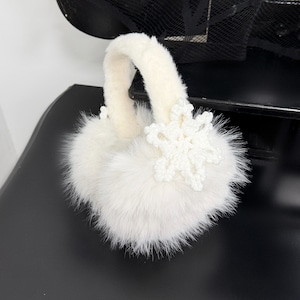 ボリューム感たっぷりのホワイトフェイクファーを使用したイヤーマフです。