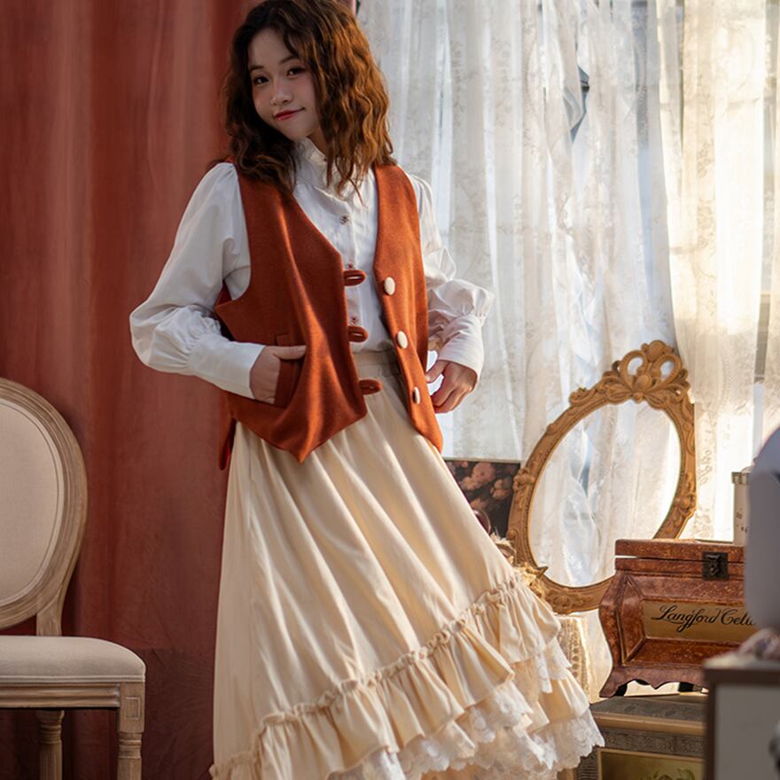 関連キーワード: #セミロリ #森ガール #ベスト #ジレ #テラコッタ #レトロ #重ね着 #秋冬コーデ #カジュアルロリータ
