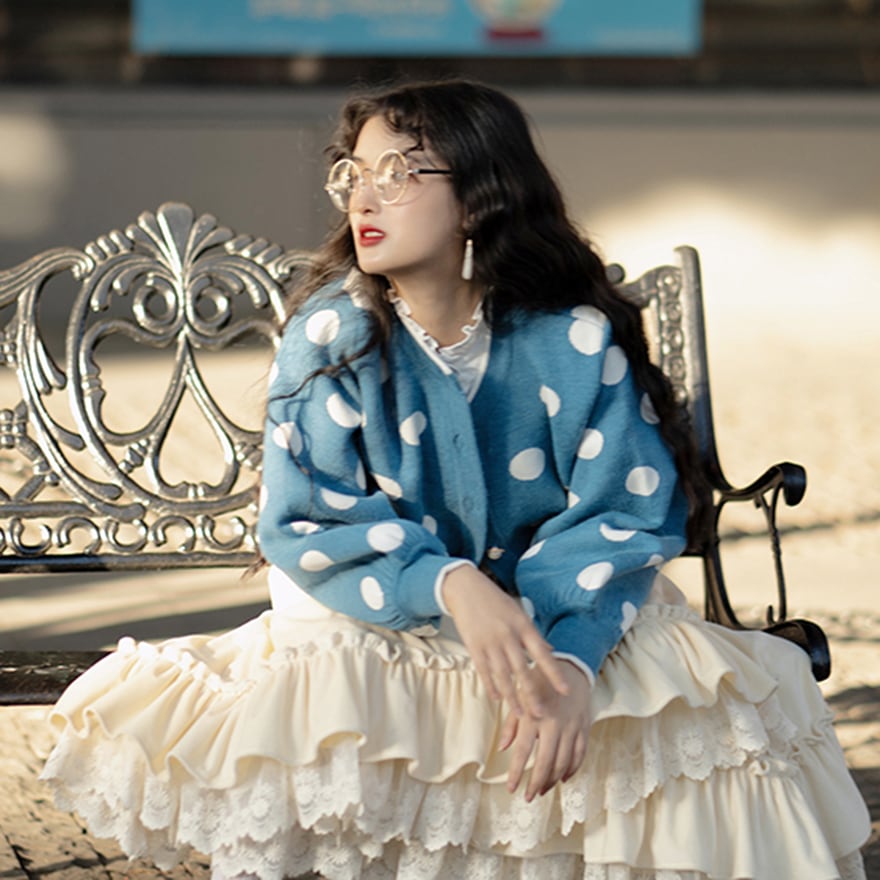 マキシ丈の上品な長さが甘さを程よく抑え、大人の女性でも日常に取り入れやすい「セミロリ」スタイルを実現しています。