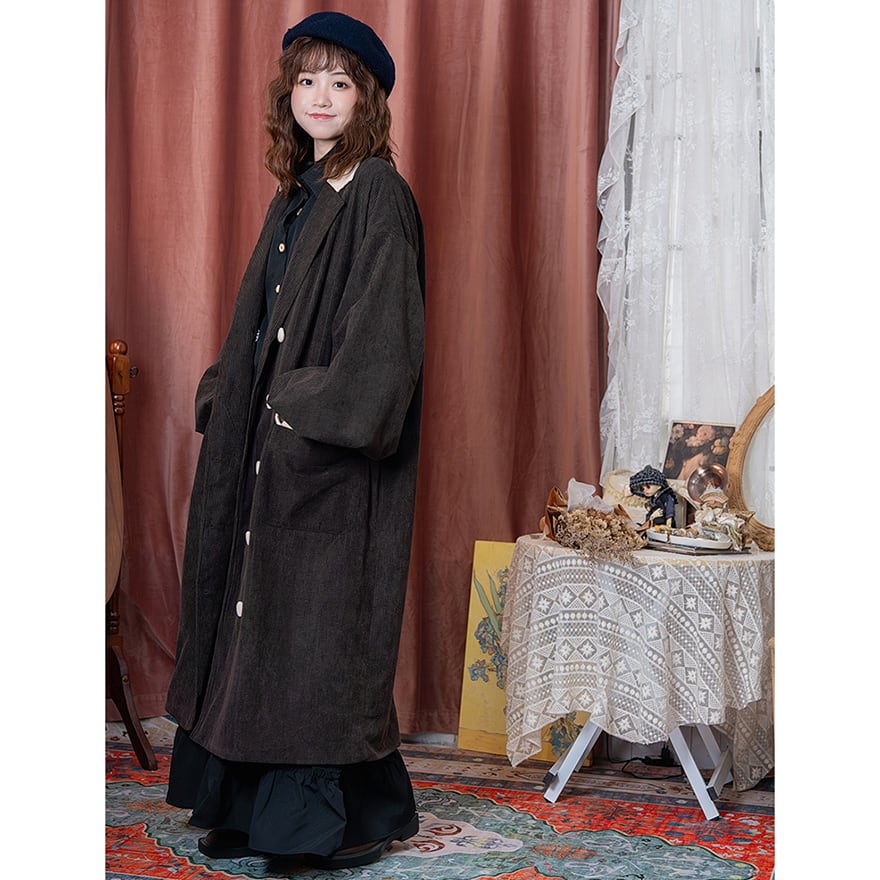 ロングコート セミロリ コーデュロイ 普段着使い 大人増し