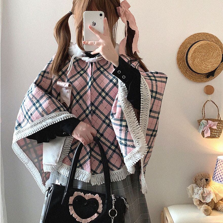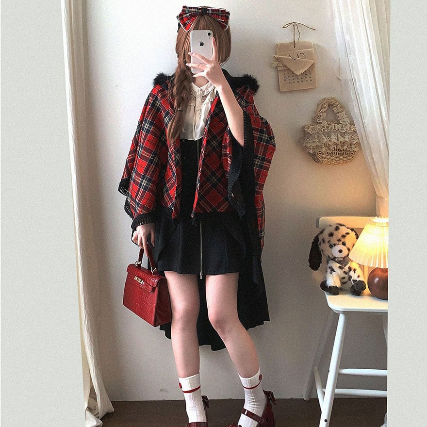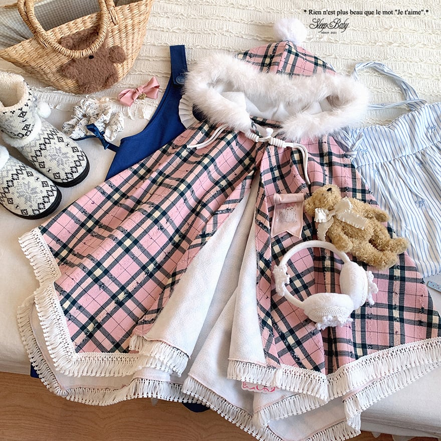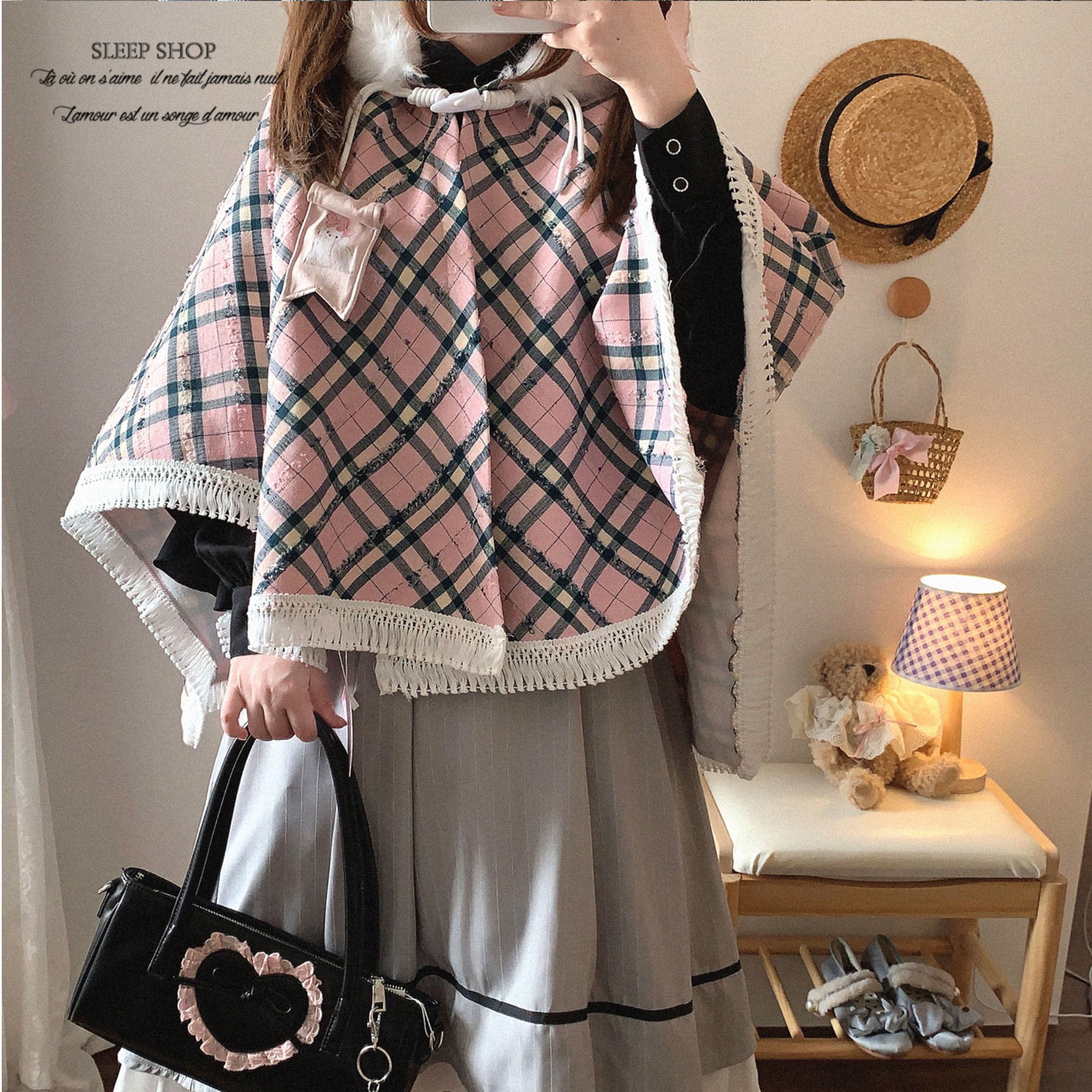 チェック柄ファー付ケープコート|地雷系・量産型・サブカル女子のあざと可愛いアウター